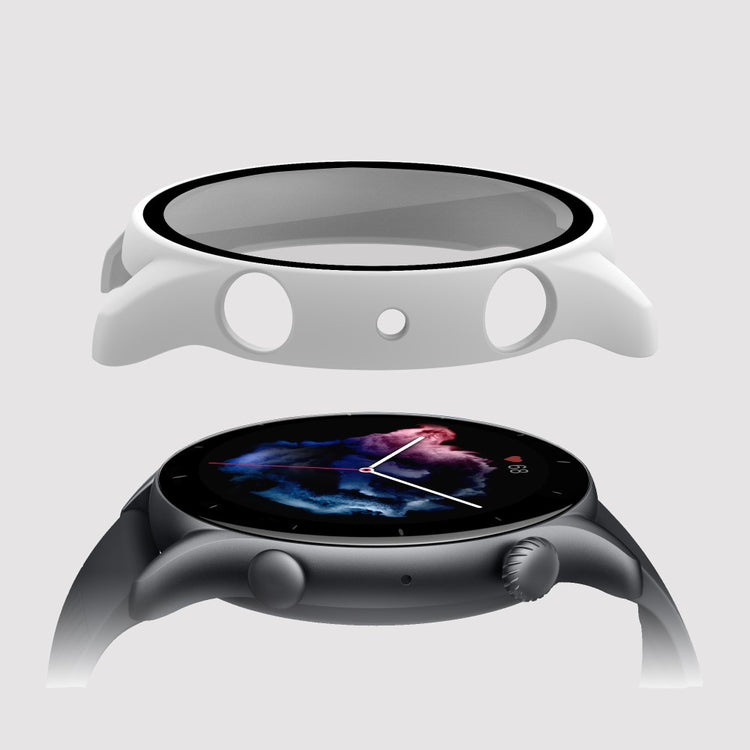 Diese robuste PC-Schutzhülle mit integriertem HD-Displayschutz aus gehärtetem Glas bietet 360-Grad-Vollschutz für Ihre Huami Amazfit GTR 3/GTR 3 Pro Smartwatch. Die Hülle bedeckt das Display und die abgerundeten Kanten und schützt Ihre Uhr effektiv vor Stößen und Kratzern.