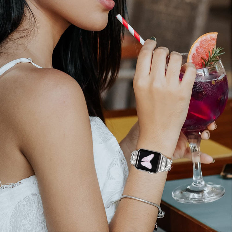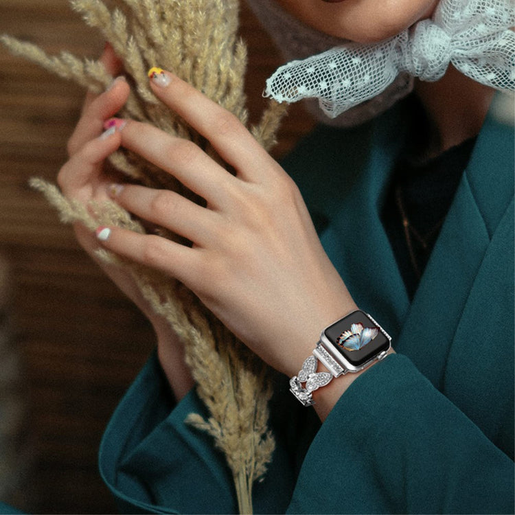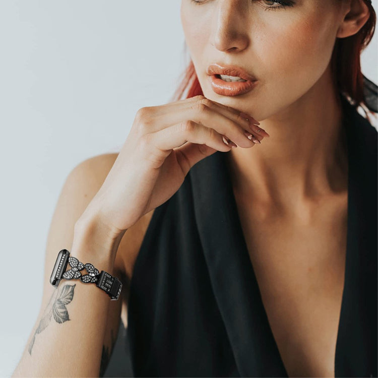 Dieses Armband aus hochwertigem Metall ist mit Strasssteinen verziert und verleiht Ihrer Apple Watch einen modischen und eleganten Look. Es ist kompatibel mit folgenden Apple Watch Modellen: