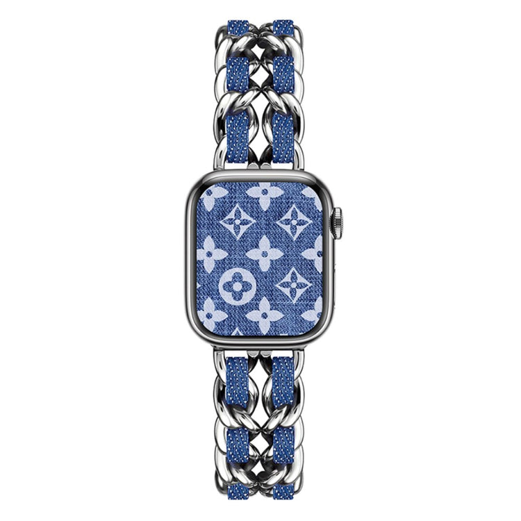 Apple Watch Series 41mm - 40mm - 38mm Universal Chain Style Watch Band - Silver+Light Denim