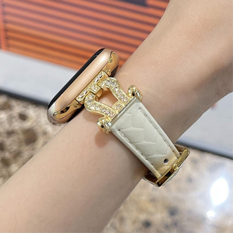 Apple Watch Series 41mm - 40mm - 38mm Universal Watch Band Cowhide Leather Strap - Green / Gold Buckle Buckle