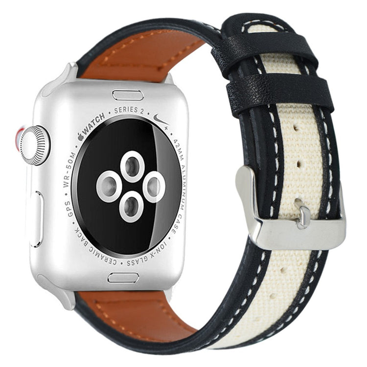 Apple Watch Series 41mm / 40mm / 38mm Cow Leather and Fabric Watch Band - Dark Brown / White