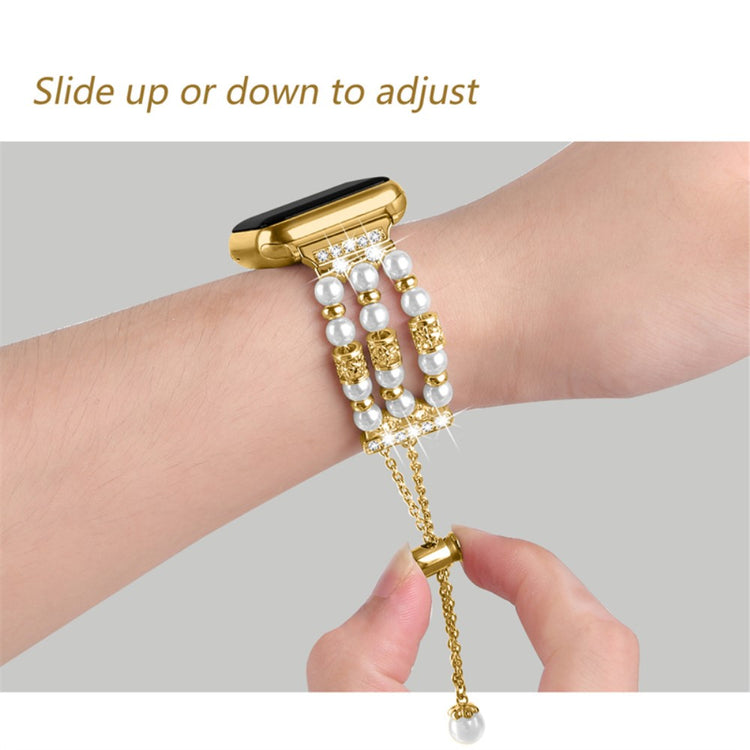 Dieses verstellbare Perlenarmband für Ihre Apple Watch ist die perfekte Ergänzung für jede Frau. Es passt für die Apple Watch Series 9 / 8 / 7 (41mm), 6 / 5 / 4 / SE / SE (2022) / SE (2023) (40mm) und 3 / 2 / 1 (38mm). Die Größe lässt sich einfach anpassen, indem der Kettenadapter nach oben oder unten geschoben wird. So gehört ein zu enges oder zu lockeres Armband der Vergangenheit an.