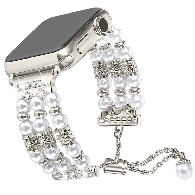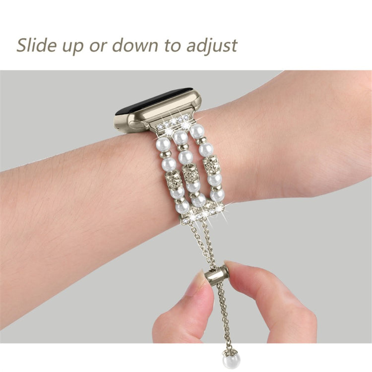 Entscheiden Sie sich für unser verstellbares Uhrenarmband, das speziell für die Apple Watch Series 9 / 8 / 7 41mm / 6 / 5 / 4 / SE / SE (2022) / SE (2023) 40mm / 3 / 2 / 1 38mm entwickelt wurde und sich durch seine elegante Optik auszeichnet. Dieses Armband ist verstellbar und passt nahezu jeder Frau, da es sich ganz einfach am Kettenadapter anpassen lässt. So haben Sie nie wieder ein zu enges oder zu lockeres Armband. Hergestellt aus glattem, poliertem Metall und strapazierfähigen Materialien, ist dieses exquisit gestaltete Armband nicht nur ein echter Blickfang, sondern verleiht Ihrem Look auch eine timeless Eleganz. Das handgefertigte Perlenarmband schmiegt sich perfekt um Ihr Handgelenk, und Sie haben die Auswahl aus drei klassischen Stilen, sodass garantiert das passende Armband für Sie dabei ist. Dieses vielseitige Uhrenarmband ist der ideale Begleiter für jede Gelegenheit – sei es ein Treffen im Café mit Freunden oder eine glamouröse Cocktailparty. Der funkelnde Uhrengürtel wird Ihr Handgelenk schmücken und Sie zum Mittelpunkt der Aufmerksamkeit machen. Außerdem eignet sich dieses luxuriöse Armband hervorragend als Geschenk für besondere Anlässe wie Hochzeiten, Geburtstage, Valentinstag oder Muttertag. Machen Sie einer Freundin oder Ihrer Freundin eine Freude mit diesem stilvollen Accessoire!