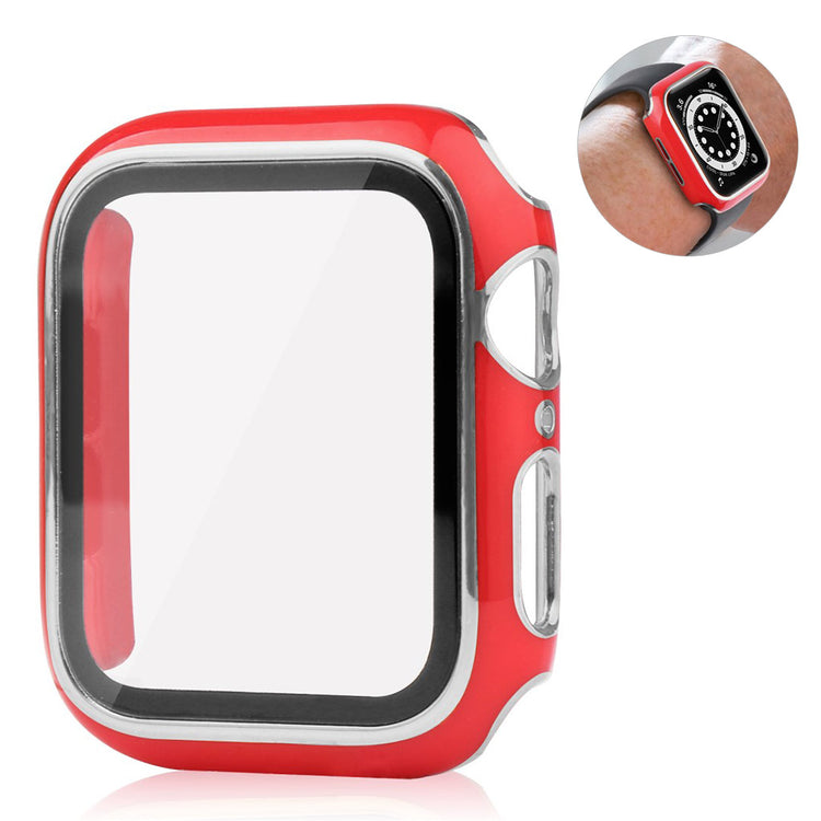 Schützen Sie Ihre Apple Watch mit unserem einteiligen Hard-PC- und gehärtetem Glas-Film-Elektroplating-Uhrgehäuse! Diese schicke und robuste Hülle bietet Ihnen zahlreiche Vorteile. Erstens garantiert der hochwertige Hard-PC-Materialschutz, dass Ihre Uhr vor Kratzer und Stoßschäden vollständig geschützt ist. Zweitens sorgt das elektroplated Design für einen glänzenden, metallischen Glanz, der Ihrer Uhr einen eleganten Look verleiht. Darüber hinaus ist die Passgenauigkeit sowohl für die Tasten als auch für die Anschlüsse der Uhr gewährleistet, sodass Sie alle Funktionen Ihrer Apple Watch ohne Einschränkungen nutzen können. Die Montage und Demontage dieser Hülle ist zudem einfach und unkompliziert, was Ihnen ermöglicht, Ihre Uhr schnell und bequem zu wechseln. Investieren Sie in den Schutz und die Eleganz Ihrer Apple Watch – es lohnt sich!