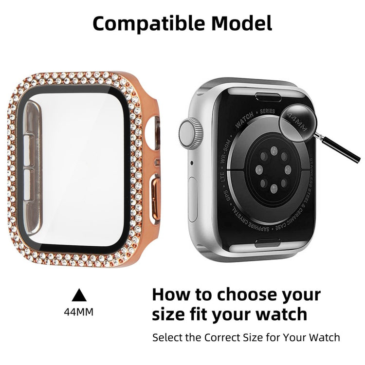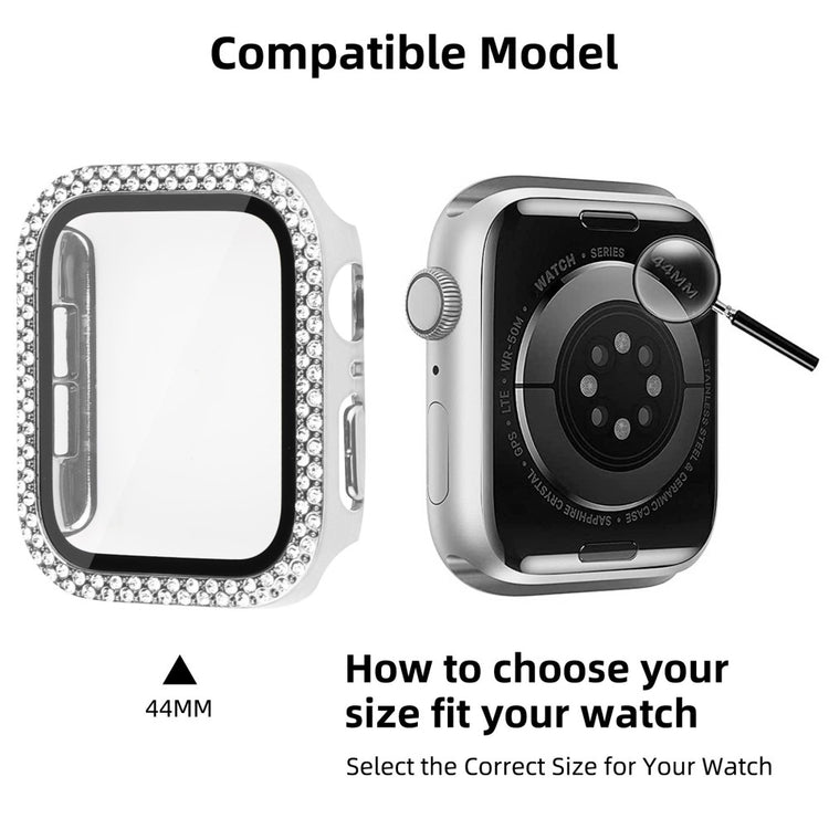 Die Doppelte Bling Rhinestone Overall Hard PC Hülle mit gehärtetem Glas Bildschirmschutz bietet nicht nur einen stilvollen Schutz, sondern auch umfassende Sicherheit für Ihre Apple Watch SE (2022) / SE / Series 6 / 5 / 4 44mm. Der 360-Grad-Schutz bewahrt Ihre Uhr vor Kratzern, Stößen und versehentlichen Stürzen. Durch den hochwertigen HD gehärteten Glas Bildschirmschutz bleibt die ursprüngliche Bildqualität erhalten, ohne die Benutzerfreundlichkeit des Bildschirms einzuschränken; die Touch-Empfindlichkeit bleibt unverändert, sodass Sie Ihre Uhr wie gewohnt bedienen können. Die funkelnden Rhinesteine sorgen für einen atemberaubenden Glanz und machen Ihre Uhr zu einem echten Blickfang. Dank des einfachen Snap-On-Designs ist die Installation kinderleicht, sodass Sie die Bänder oder die Hülle beim Aufladen der Uhr nicht abnehmen müssen. Zudem garantieren die exzellente Verarbeitung und präzisen Aussparungen einen einfachen Zugriff auf alle Bedienelemente, Tasten und Sensoren Ihrer Uhr. Schützen Sie Ihre Apple Watch stilvoll und funktional!