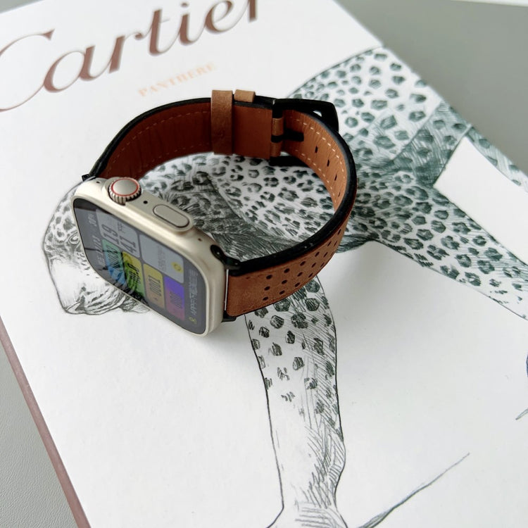 Apple Watch Series 49mm - 45mm - 44mm - 42mm Universal Top Layer Cowhide Watch Strap - Light Yellow