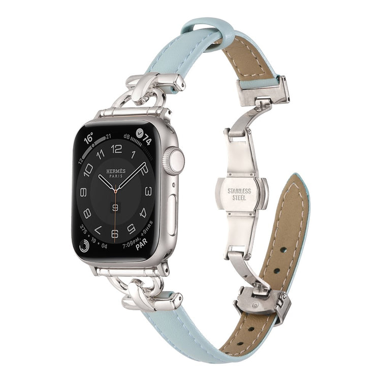 Apple Watch 49mm / 45mm / 44mm / 42mm Leather Watch Band - Blue / Silver Buckle
