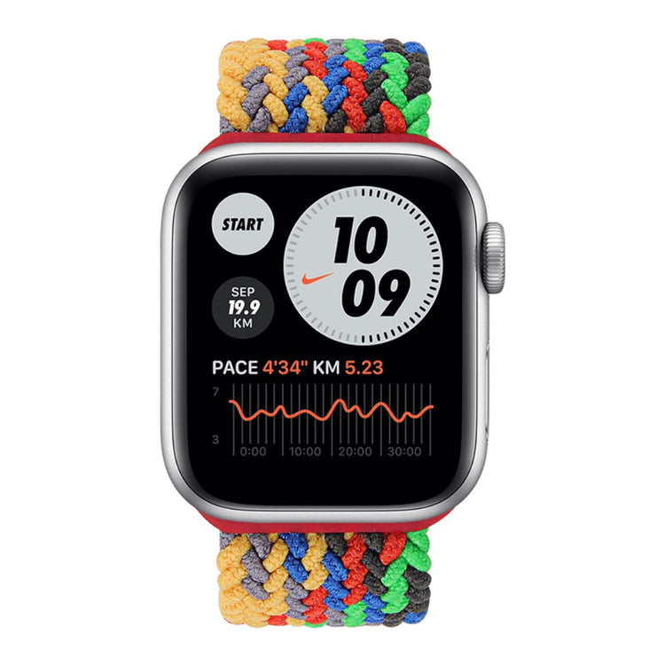 Dieses elastische, geflochtene Armband ist die perfekte Ergänzung für Ihre Apple Watch. Es ist in Größe L erhältlich und kompatibel mit der Apple Watch Series 9 / 8 / 7 41mm / 6 / 5 / 4 / SE (2023) / SE(2022) / SE 40mm / 3 / 2 / 1 38mm.
