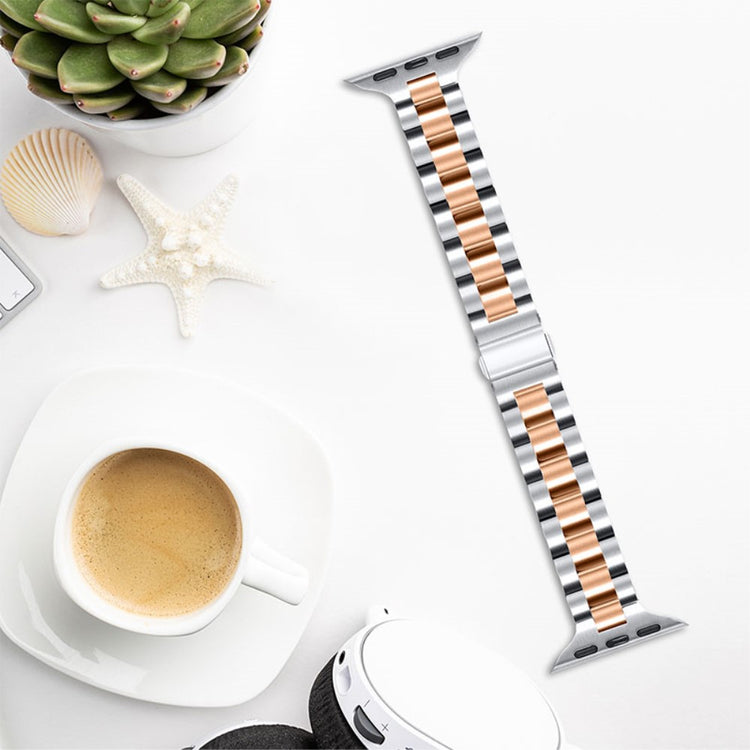 Entscheiden Sie sich für unser 3 Beads Armband aus hochwertigem Edelstahl, um Ihrem Apple Watch ein elegantes und individuelles Aussehen zu verleihen. Dieses Armband bietet nicht nur eine stilvolle Ergänzung zu Ihrer Smartwatch, sondern besteht auch aus langlebigem und robustem Edelstahl, der Ihnen eine lange Lebensdauer garantiert. Mit der verbesserten Doppelschnalle wird ein sicherer Halt gewährleistet, sodass Sie sich keine Sorgen über das Abrutschen des Armbands machen müssen. Das schöne Design sorgt dafür, dass Ihre Apple Watch immer im besten Licht erscheint, ideal für sowohl formelle als auch informelle Anlässe. Zudem ermöglicht die einfache und schnelle Anpassung verschiedene Handgelenksgrößen, sodass Sie den perfekten Sitz für ein angenehmes Tragegefühl finden können. Gönnen Sie sich und Ihrer Smartwatch diesen Hauch von Luxus!