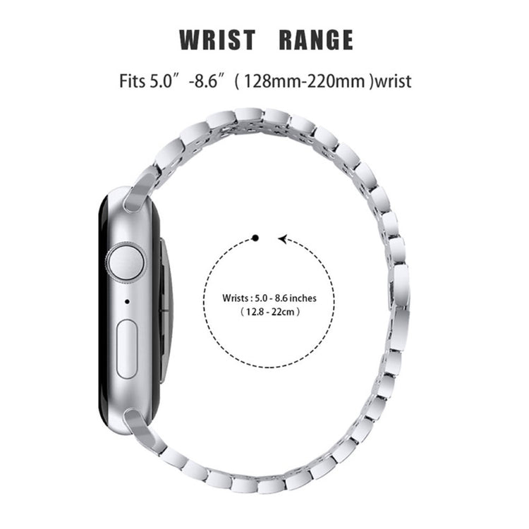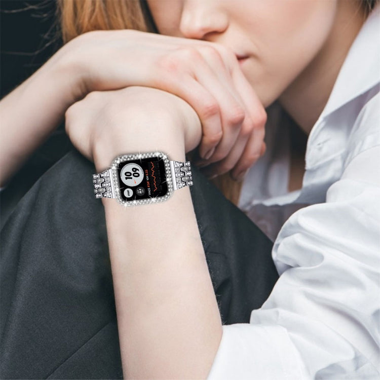 Verleihen Sie Ihrer Uhr mit dem Fünf Perlen Metallarmband ein neues Leben! Dieses Premium-Metallarmband ist nicht nur haltbar und robust, sondern bietet auch einen toughen und stabilen PC-Schutzrahmen, der Ihre Uhr vor Kratzern schützt. Die auffällige Rhinestone-Dekoration macht das Armband zu einem eleganten und einzigartigen Accessoire, das das Licht auf sich zieht und Ihre Eleganz unterstreicht. Dieses Armband ist die ideale Ersatzlösung für Ihr altes, defektes Armband und zeigt Ihren hervorragenden Geschmack. Es sorgt dafür, dass Ihre Uhr noch ansprechender aussieht und setzt ein Zeichen für Stil und Klasse. Überzeugen Sie sich selbst von der perfekten Passform für Handgelenke mit einem Umfang von 5.0-8.6 Zoll, und gönnen Sie Ihrer Apple Watch das Upgrade, das sie verdient!