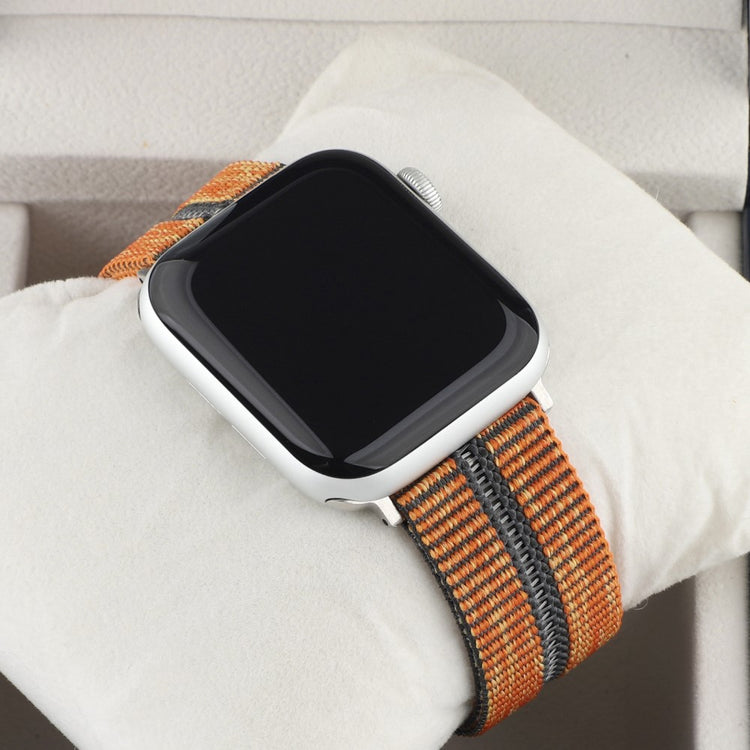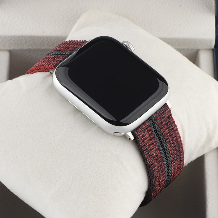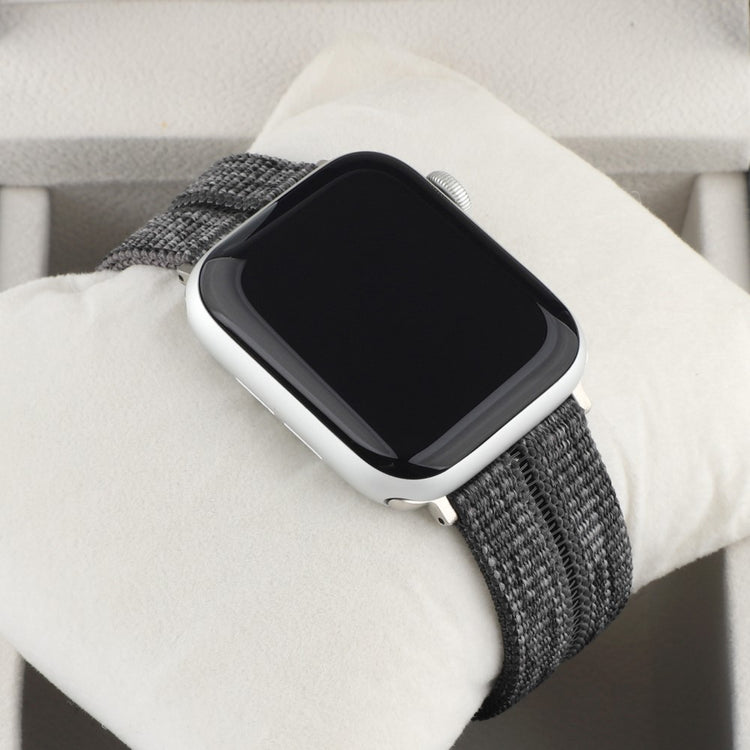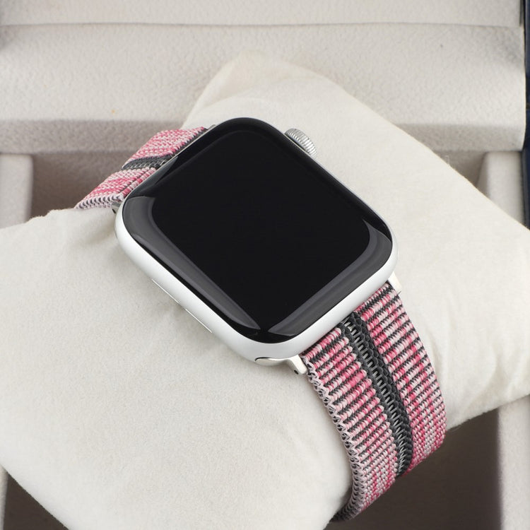Dieses sportliche Armband aus hochwertigem Nylon bietet einen weichen und angenehmen Tragekomfort. Mit seinem geflochtenen Streifenmuster und einer Reihe von Aussparungen ist es ein stilvolles Accessoire für Ihre Smartwatch.