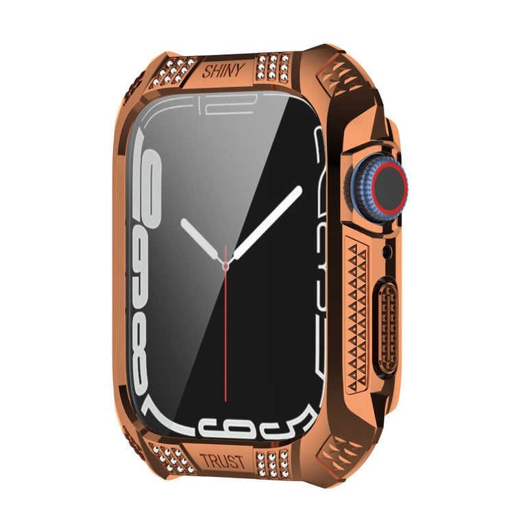 Schützen Sie Ihre Apple Watch Series 9 / 8 / 7 41mm mit unserem eleganten Rhinestone Rhombus Imprint Elektroplating Hard PC Cover. Dieses Produkt bietet 360-Grad-Vollschutz für Ihre Uhr, da es die gesamte Bildschirmfläche sowie die gebogenen Kanten abdeckt. Das hochwertige PC-Material fühlt sich nicht nur komfortabel und glatt an, sondern sorgt auch für eine stilvolle Note dank des modernen elektroplatierten Designs. Mit der präzisen Passform ermöglicht das praktische Design den uneingeschränkten Zugang zu allen Bedienelementen, Tasten, Sensoren und Funktionen Ihrer Uhr. Die genauen Aussparungen garantieren eine perfekte Passform, während der integrierte Bildschirm-Schutz aus gehärtetem Glas zusätzlichen Schutz für die äußere Oberfläche Ihrer Uhr bietet. Das ultra-dünne Glas sorgt dafür, dass die Inhalte der Uhr schnell reagiert werden können. Die einfache Snap-On-Installation erlaubt es Ihnen, die Hülle ohne das Abnehmen der Armbänder anzubringen. Investieren Sie in den Schutz Ihrer Apple Watch und profitieren Sie von einem zeitlosen Design und optimaler Funktionalität.