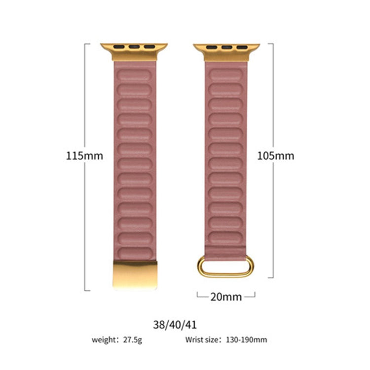 Dieses magnetische Uhrenarmband aus echtem Rindsleder ist kompatibel mit der Apple Watch Series 9 / 8 / 7 41mm / 6 / 5 / 4 / SE (2022) / SE (2023) / SE 40mm / 3 / 2 / 1 38mm. Dank des magnetischen Designs lässt sich die Länge des Armbands individuell anpassen und ist somit für jedes Handgelenk (130-190mm) geeignet.