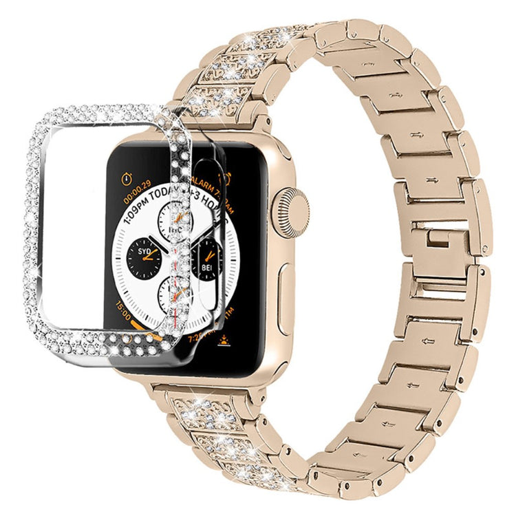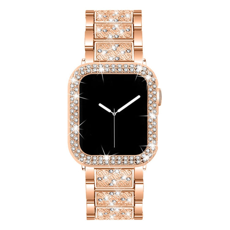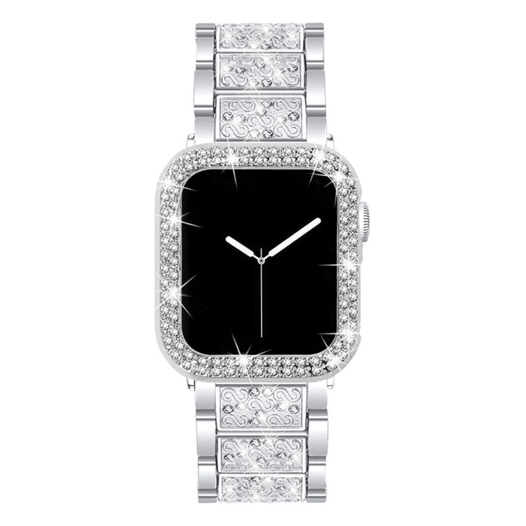 Entscheiden Sie sich für das Rhinestone Decor 3 Beads Edelstahl-Uhrenarmband kombiniert mit einer doppelreihigen Rhinestone-PC-Uhrenhülle für die Apple Watch Series 7 45mm und bringen Sie Stil und Eleganz in Ihren Alltag! Dieses hochwertige Edelstahl-Uhrenarmband ist nicht nur haltbar und robust, sondern bietet auch einen hervorragenden Schutz für Ihre Uhr. Die tough und stabile PC-Uhrenhülle verhindert Kratzer und Beschädigungen am Uhrengehäuse und sorgt dafür, dass Ihre Uhr jederzeit in bestem Zustand bleibt. Das auffällige Design mit schimmernden Rhinestones macht die Uhr zu einem echten Blickfang und verleiht Ihnen einen eleganten und einzigartigen Look. Zudem eignet sich dieses Armband perfekt als Ersatz für Ihr altes, defektes Armband und zeigt Ihren exzellenten Geschmack. Gönnen Sie sich eine Uhr, die nicht nur funktional ist, sondern auch Ihre Persönlichkeit unterstreicht. Die verstellbare Handgelenkgröße von 5.5 bis 8.1 Zoll garantiert eine optimale Passform für nahezu jedes Handgelenk. Verbessern Sie das Erscheinungsbild Ihrer Apple Watch und ziehen Sie alle Blicke auf sich!