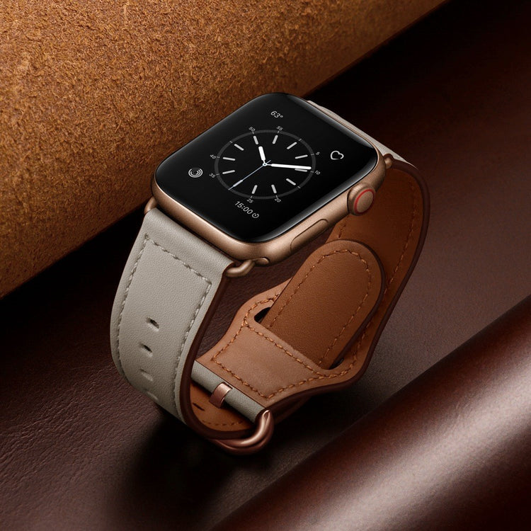Helt vildt fed Apple Watch Series 7 45mm Ægte læder Urrem - Beige#serie_3