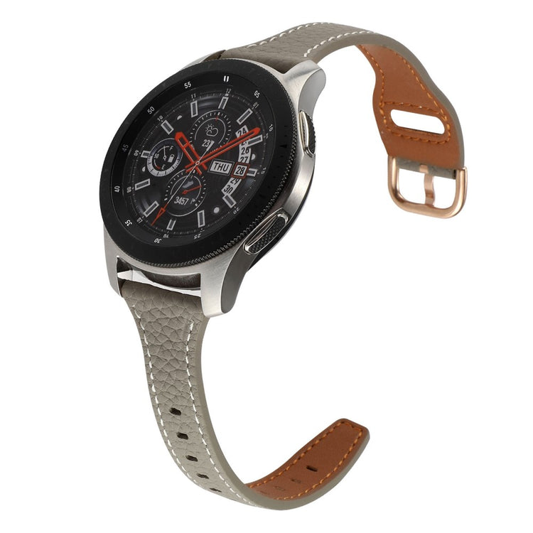Entscheiden Sie sich für das hochwertige 20mm T-förmige Uhrenarmband für die Samsung Galaxy Watch 5 Pro 45mm und die Watch4 Classic in verschiedenen Größen. Dieses Armband besteht aus echtem Leder mit einer stilvollen Litchi-Textur, die nicht nur elegant aussieht, sondern auch einen angenehmen Tragekomfort bietet. Der praktische Pinverschluss ermöglicht ein einfaches An- und Ablegen, während die verstellbaren Löcher das Anpassen an Ihr Handgelenk erleichtern. Es ist die perfekte Alternative zu Ihrem alten, defekten Armband und wertet Ihre Smartwatch optisch und funktionell auf. Diese modischen Armbänder sind in mehreren Farben erhältlich, sodass Sie ganz nach Ihrem persönlichen Stil wählen können. Auch die robusten und langlebigen Eigenschaften des echten Leders garantieren, dass Sie lange Freude an diesem Zubehör haben werden. Statten Sie Ihre Smartwatch mit einem Armband aus, das nicht nur passt, sondern auch jedes Outfit ergänzt.