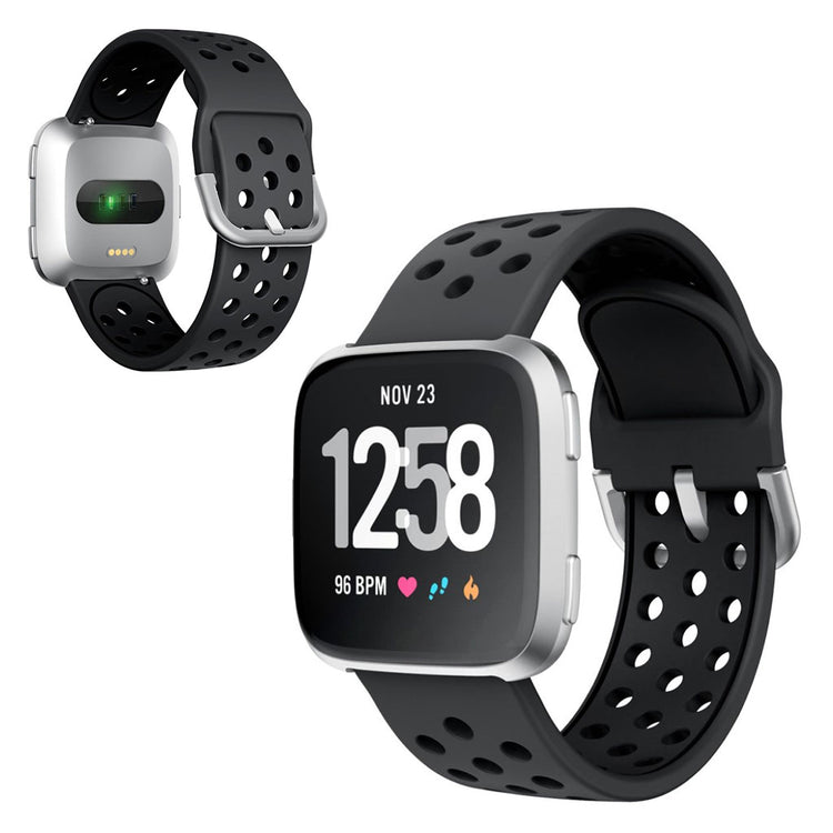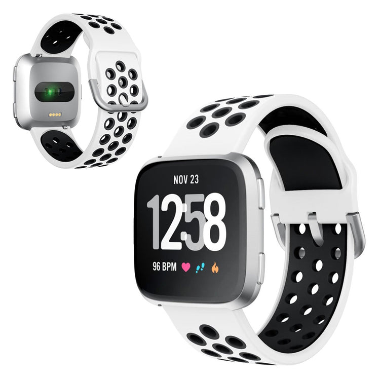 Dieses Ersatzarmband aus umweltfreundlichem Silikon ist besonders verschleißfest und bietet dank des klassischen Metallverschlusses einen sicheren Halt. Das zweifarbige Design sorgt für einen frischen Look an Ihrem Handgelenk, während die mehrere Löcher die Anpassung der Größe erleichtern. Ideal als Ersatz für Ihr altes, defektes Armband und kompatibel mit Fitbit Versa/Versa 2.