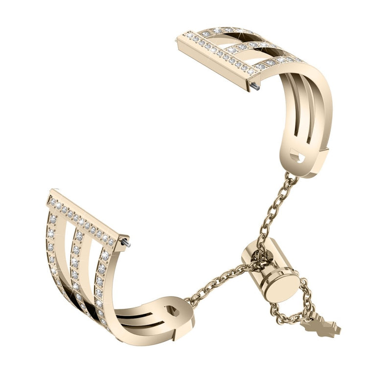 Dieses elegante Metall-Gliederarmband mit 3-reihigem Strass-Dekor verleiht Ihrer Fitbit Versa 2/Versa Lite einen Hauch von Glamour. Das wunderschöne und glänzende Design macht Ihre Smartwatch zu einem echten Schmuckstück.