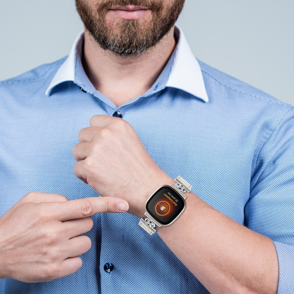 Mega Zäh Fitbit Sense / Fitbit Versa 3 Echtes Leder Und Metall Armband