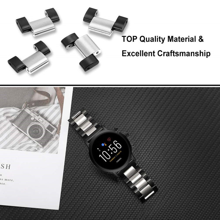Das Uhrenarmband aus Edelstahl ist langlebig und widerstandsfähig und bietet eine edle Möglichkeit, Ihre Uhr zu personalisieren. Die Länge lässt sich leicht an Ihr Handgelenk anpassen und die Befestigung erfolgt schnell und problemlos. Dieses Armband ist geeignet für Handgelenke von 5.7" bis 7.87" (145mm-200mm) und kompatibel mit Fossil Gen 5 Carlyle HR/Julianna HR 22mm.