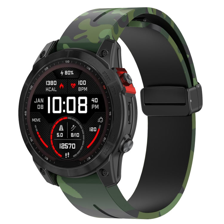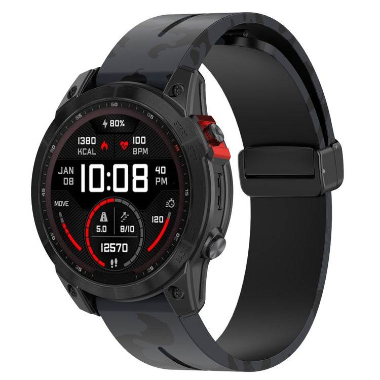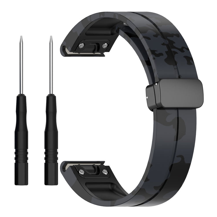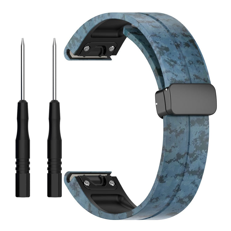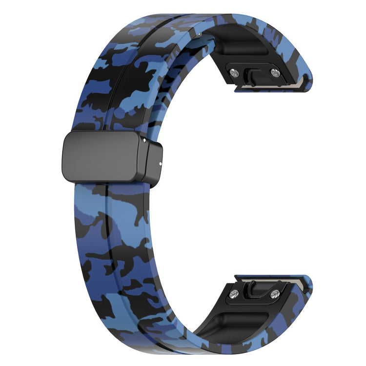 Garmin 26mm Quickfit Universal Black Buckle Watch Band Flexible Strap - Camo Blue