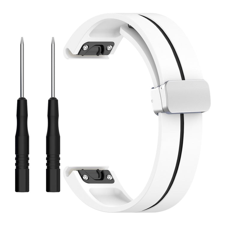 Garmin 26mm Quickfit Universal Silver Buckle Flexible Band Watch Strap - Midnight Blue+White