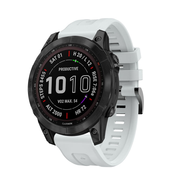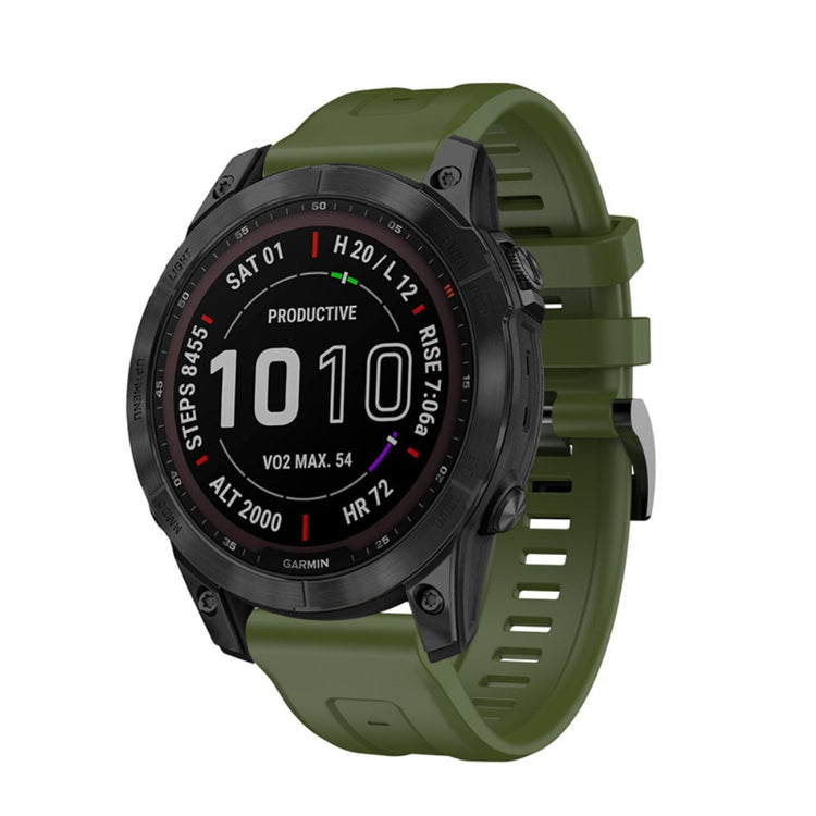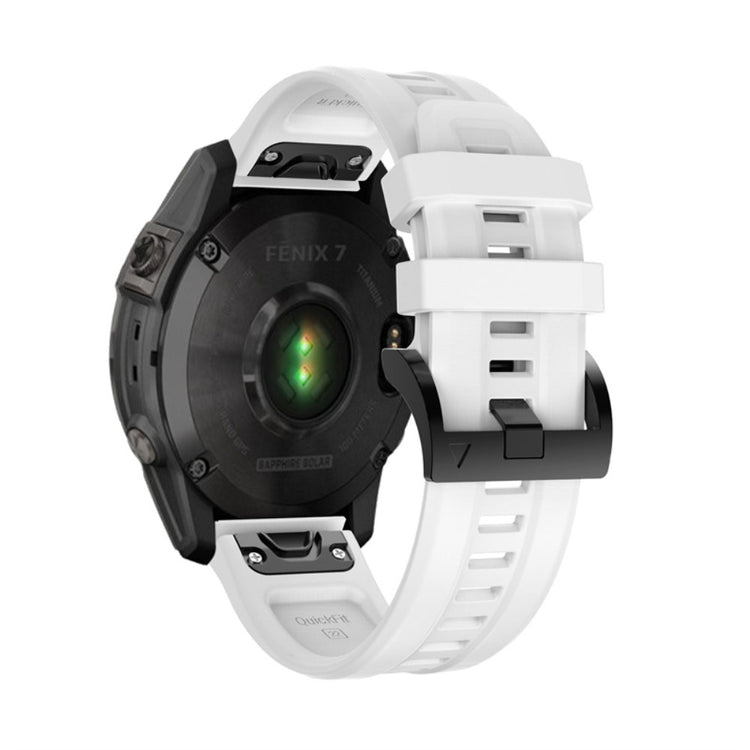 Entscheiden Sie sich für unser flexibles Silikon-Uhrenarmband, die perfekte Ergänzung für Ihre Garmin Fenix 7, Fenix 6 Pro, Fenix 5 oder Amazfit Falcon. Hergestellt aus hochwertigem weichem Silikonmaterial, bietet unser Armband hohe Widerstandsfähigkeit gegen Abnutzung und sorgt für Langlebigkeit. Durch die feine Verarbeitung ist das Tragen äußerst angenehm und atmungsaktiv, ideal für sportliche Aktivitäten oder den Alltag. Das Armband lässt sich mühelos an Ihr Handgelenk anpassen, sodass Sie den optimalen Sitz finden können. Mit seinem modernen, sportlichen Design ist es nicht nur funktional, sondern auch ein stilvolles Accessoire. Der praktische Schnellverschluss ermöglicht ein einfaches Abnehmen des Armbands, wodurch Sie schnell und unkompliziert den Look Ihrer Uhr ändern können. Ersetzen Sie Ihr altes oder defektes Armband durch dieses ideale Ersatzarmband und genießen Sie einen neuen Tragekomfort. Optimieren Sie Ihr Trageerlebnis heute!