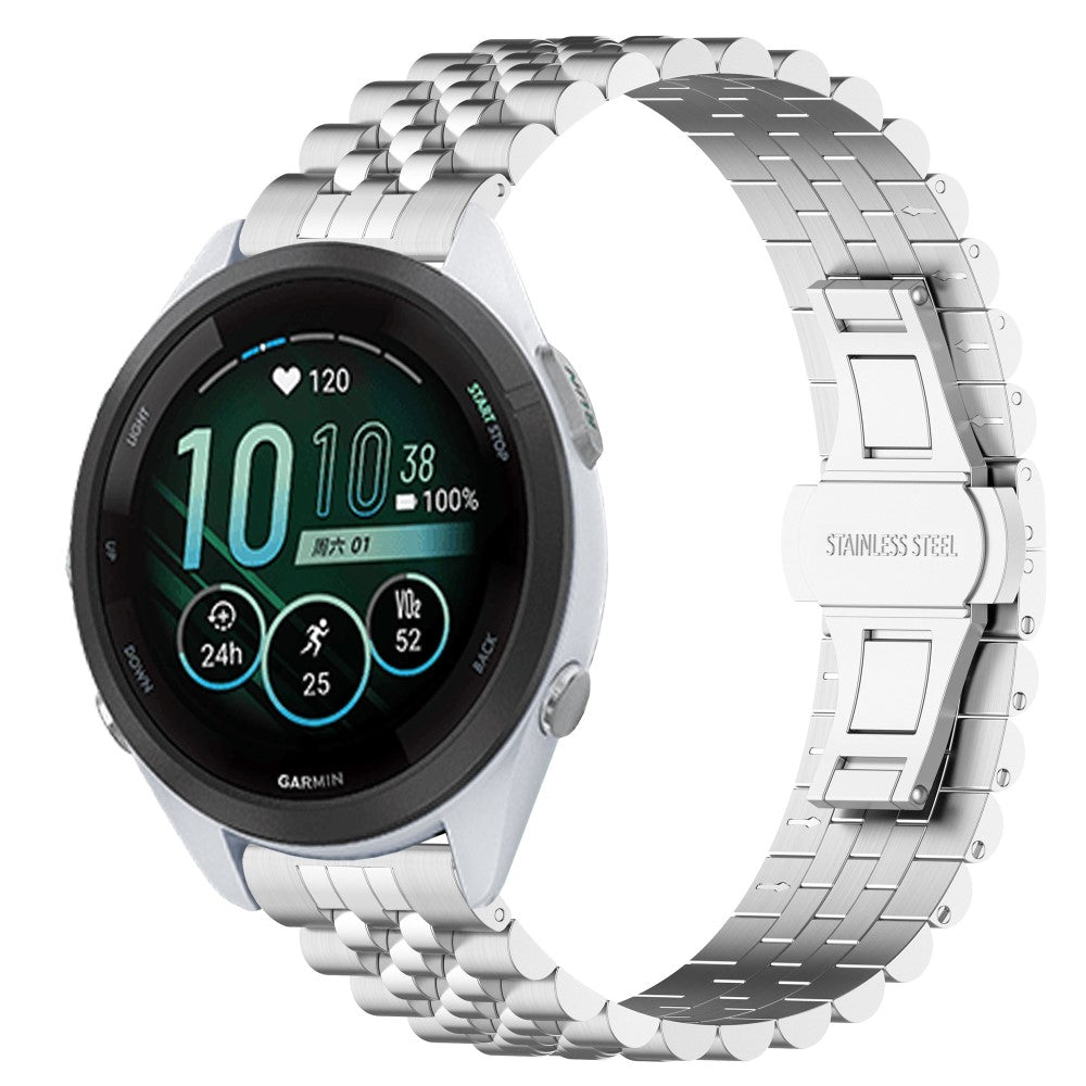 Wenn Sie auf der Suche nach einem stilvollen und eleganten Armband für Ihre Smartwatch sind, ist das Edelstahl-Uhrenarmband für die Garmin Forerunner 265S / 255S / Vivoactive 4S die perfekte Wahl. Hergestellt aus hochwertigem Edelstahl, vereint dieses Armband ein modernes Design mit hervorragender Verarbeitung. Jedes Armband wird von erfahrenen Handwerkern gefertigt und bietet somit eine hohe Strapazierfähigkeit und einen komfortablen Tragekomfort. Das klappbare Verschlusssystem sorgt nicht nur für einen sicheren Halt, sondern bietet auch zusätzlichen Schutz für Ihre Uhr, was es sicherer macht als viele andere Verschlüsse. Mit einem Maß von 179mm in der Länge und einer Breite von 18mm ist es ideal für Handgelenke von 5.6 bis 8.5 Zoll. Dieses Armband eignet sich besonders für besondere Anlässe wie feierliche Veranstaltungen, Meetings, Reisen und geschäftliche Gelegenheiten und verleiht Ihrem Auftreten eine elegante Note. Kompatibel mit verschiedenen Modellen der Garmin-Reihe, ist dieses Armband die perfekte Ergänzung für Ihre intelligente Uhr und ein echtes Must-Have für modebewusste Frauen.