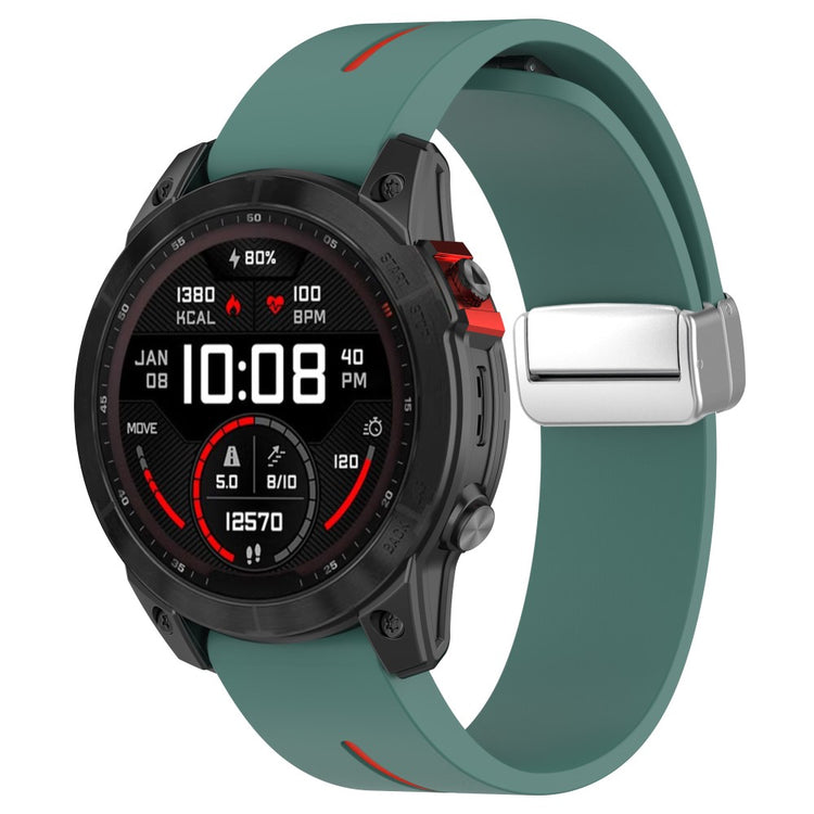 Entscheiden Sie sich für das magnetische Armband aus hochwertigem Silicone für Ihre Garmin Descent MK3, MK3i, Fenix 7S, 6S oder 5S. Dieses Armband bietet nicht nur ein hohes Tragegefühl, sondern lässt sich auch mühelos mit Ihren täglichen Outfits kombinieren. Der verwendete hochwertige Silikon schont die Haut und ist hautverträglich, sodass Allergien ausgeschlossen sind. Die haltbaren Materialien gewährleisten einen langen Gebrauch, wodurch das Armband eine ideale Wahl für den Ersatz Ihres alten, beschädigten Armbands darstellt. Darüber hinaus ermöglicht das Falt-Magnetverschlussdesign eine einfache Anpassung der Größe, was den Komfort und die Funktionalität verbessert. Genießen Sie die Möglichkeit, aus verschiedenen Farben auszuwählen, um Ihren individuellen Stil zu unterstreichen. Mit einer Breite von 20mm und einer Länge von 82+110mm passt dieses Armband perfekt zu einer Vielzahl von Garmin-Modellen. Verleihen Sie Ihrem Smartwatch-Erlebnis mit diesem modernen Armband den letzten Schliff!