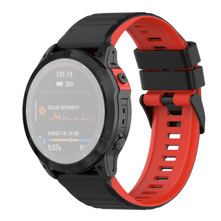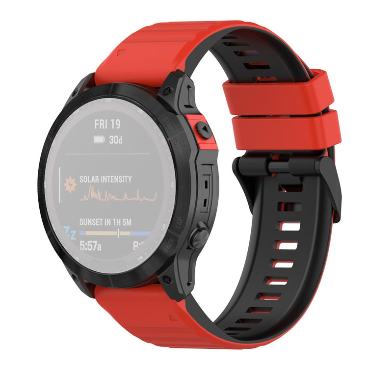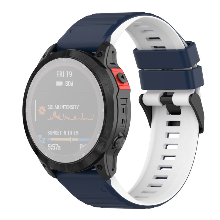 Entscheiden Sie sich für das zweifarbige Silikon-Armband für Ihre Garmin Fenix 6 und genießen Sie zahlreiche Vorteile! Dieses Armband besteht aus umweltfreundlichem Silikon, das sowohl wasserfest als auch schweißresistent ist, wodurch es perfekt für Ihren aktiven Lebensstil geeignet ist. Der hochwertige Stoff sorgt dafür, dass das Armband verschleißfest ist, was bedeutet, dass es auch bei intensiver Nutzung lange hält. Mit seinem einstellbaren Design können Sie die Größe einfach an Ihr Handgelenk anpassen, wodurch es weich und bequem zu tragen ist. Das Armband bietet eine stilvolle und zeitgemäße Optik, die Ihren persönlichen Stil perfekt ergänzt. Es ist die ideale Lösung, um Ihr altes, beschädigtes Armband zu ersetzen und gleichzeitig Ihrem Smartwatch ein frisches Aussehen zu verleihen. Kompatibel mit verschiedenen Garmin-Modellen, ist dieses Armband eine sinnvolle Investition in Ihre Smartwatch!