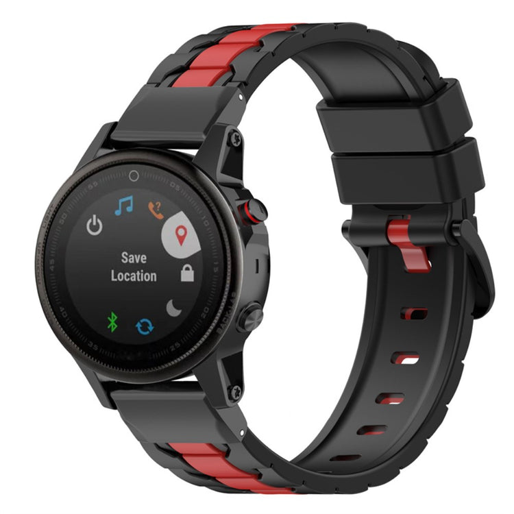 Entdecken Sie das perfekte Zubehör für Ihre Garmin Fenix 7 / 7 Solar / 6 / 6 GPS / 6 Pro GPS / 5 / 5 Plus / Quatix 5 Smartwatch mit unserem hochwertigen 22mm Uhrenarmband aus Silikon. Dieses stilvolle Armband besticht durch seine hochwertige Verarbeitung und das komfortable Tragegefühl, welches es zu einer idealen Wahl für den Alltag macht. Die schadstofffreien Materialien sind hautfreundlich und verursachen keine Allergien, während die robuste Uhren-Schnalle aus langlebigem Material sorgt, dass Ihr Armband allen Herausforderungen des Alltags standhält. Dank des intelligenten Designs mit mehreren Löchern lässt sich die Größe des Armbands mühelos anpassen, wodurch es für jedes Handgelenk geeignet ist. Dieses Armband ist nicht nur eine exzellente Ersatzlösung für Ihr altes oder defektes Armband, sondern auch der perfekte Begleiter für Beruf, Freizeit und zahlreiche Alltagsanlässe. Wählen Sie aus verschiedenen Optionen, um Ihren persönlichen Stil optimal zu unterstreichen – bringen Sie frischen Wind in Ihre Smartwatch und profitieren Sie von einem Accessoire, das sowohl funktional als auch modisch ist!