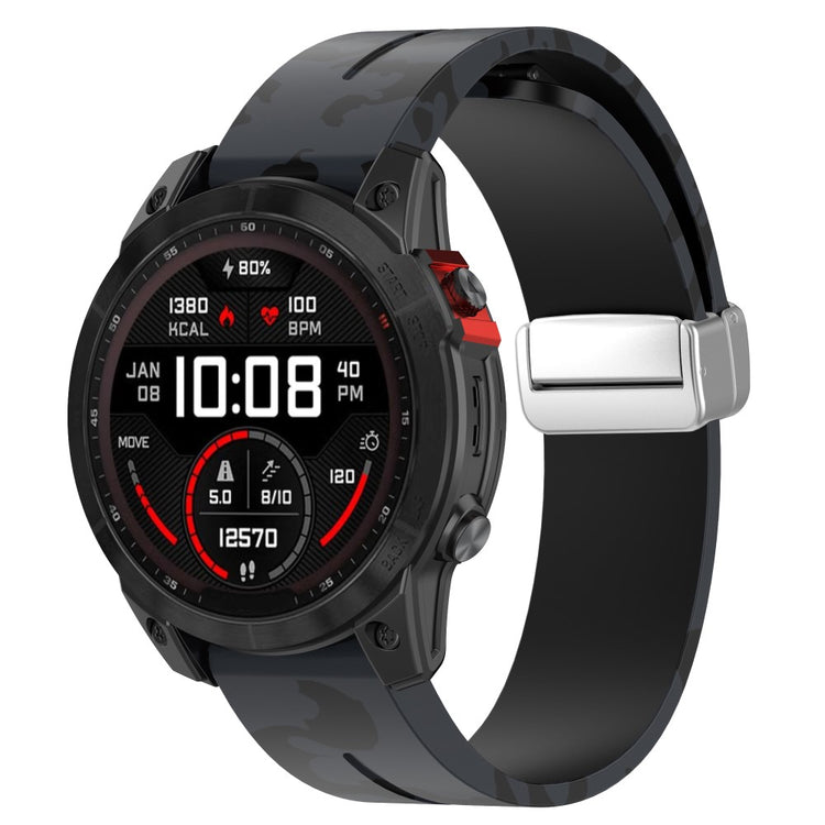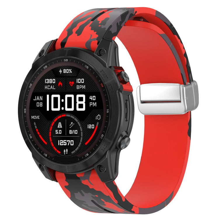 Garmin 26mm Quickfit Universal Flexible Watch Band Silver Buckle Wrist Strap - Camo Wine Red