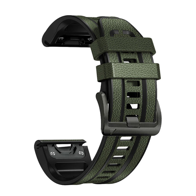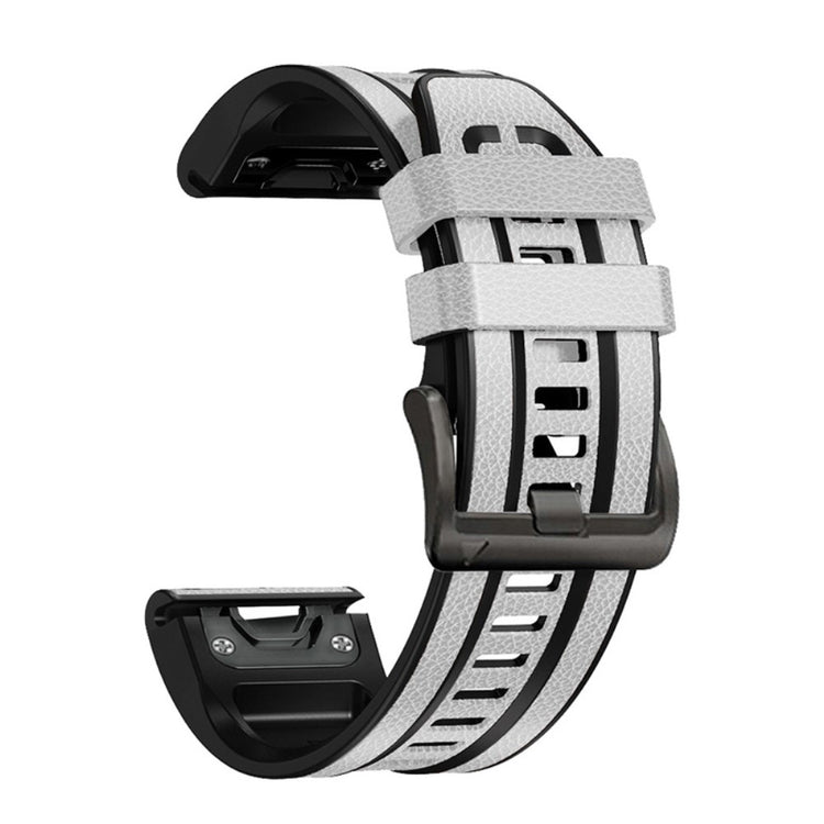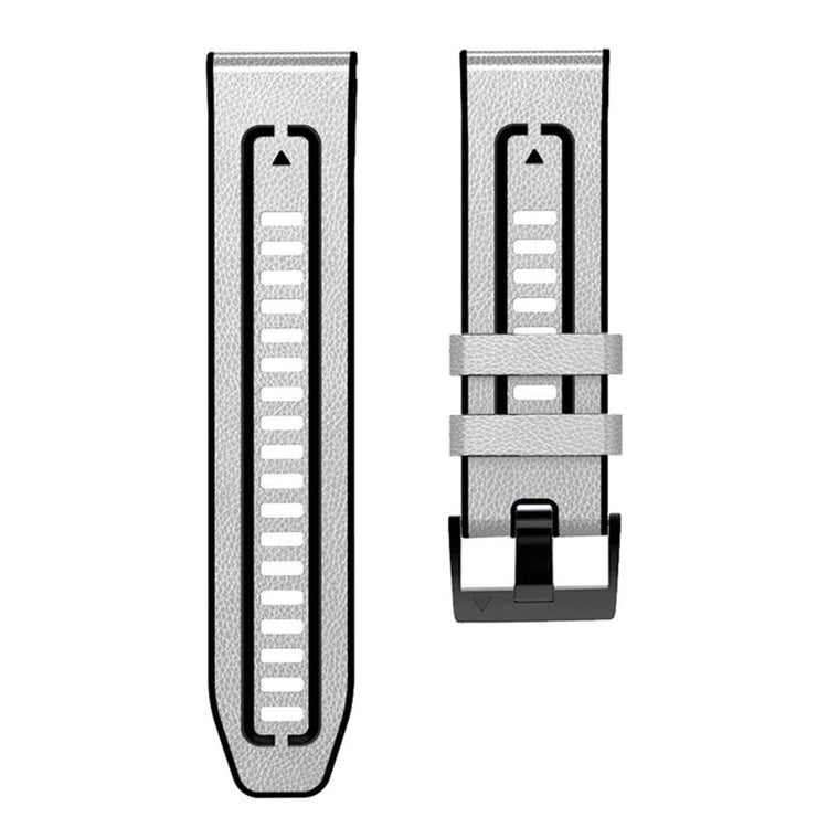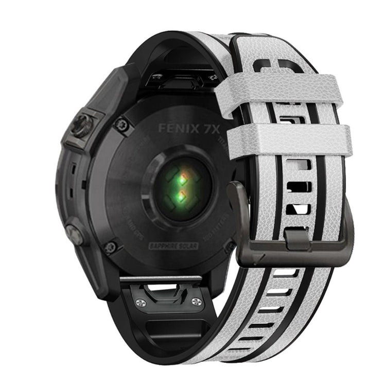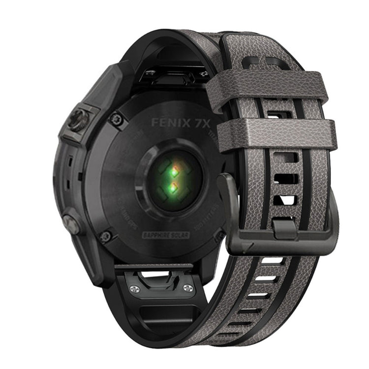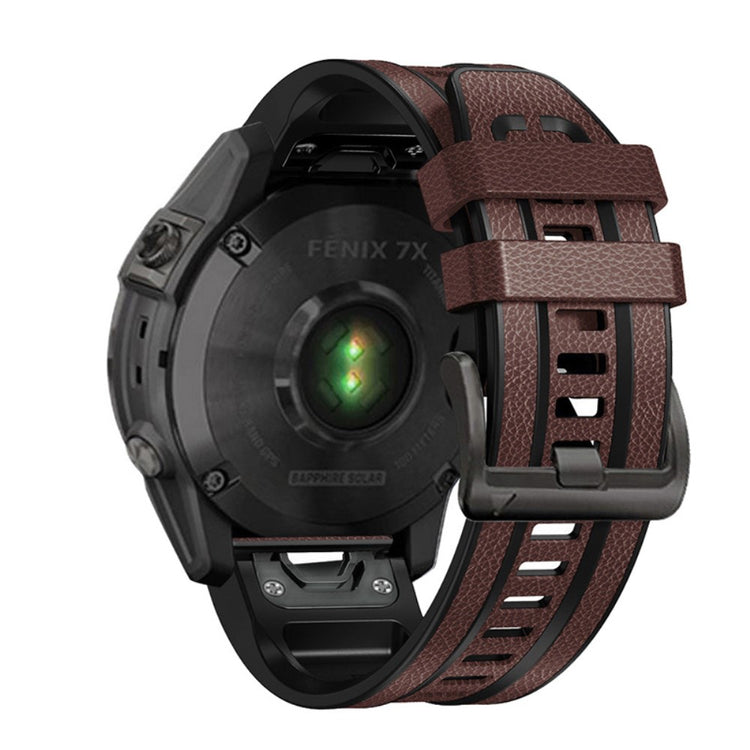 Wenn Sie auf der Suche nach einem hochwertigen Ersatzarmband für Ihre Garmin Fenix 7X sind, ist das Quick Release Leder- und Silikonarmband die ideale Wahl. Hergestellt aus premium Leder und Silikon, überzeugt es durch seine Langlebigkeit und Tragekomfort. Das klassische Dornschließe sorgt dafür, dass Ihr smartwatch Armband sicher am Handgelenk sitzt. Dank der verstellbaren Löcher können Sie das Armband problemlos an Ihre Handgelenkgröße anpassen, was es für jeden Benutzer bequem macht. Egal, ob Sie Ihr altes, defektes Armband ersetzen oder einfach Ihren Stil auffrischen möchten, dieses Armband ist die perfekte Lösung. Es ist mit mehreren Garmin-Modellen kompatibel und wiegt nur 28g, was für einen bequemen Sitz sorgt. Warten Sie nicht länger, gönnen Sie sich dieses elegante und funktionale Armband für Ihre Fenix 7X und genießen Sie den Komfort und die Stilvielfalt, die es bietet.