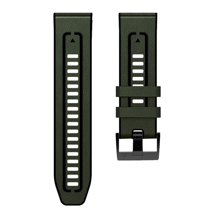 Das Austausch-Armband für die Garmin Fenix 7X besteht aus hochwertigem Leder und Silikon, was es langlebig und angenehm zu tragen macht. Mit der klassischen Dornschließe sitzt Ihr Smartwatch-Armband sicher am Handgelenk, während die Verstelllöcher eine individuelle Anpassung ermöglichen. Dieses ideal Ersatz-Armband passt perfekt und ist kompatibel mit verschiedenen Garmin-Modellen, um Ihre Bedürfnisse zu erfüllen.