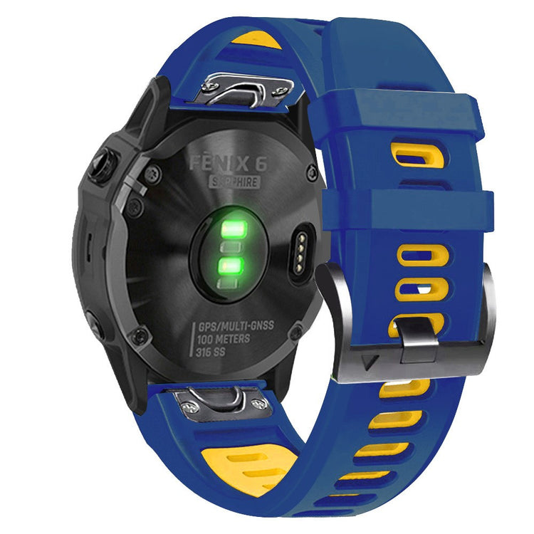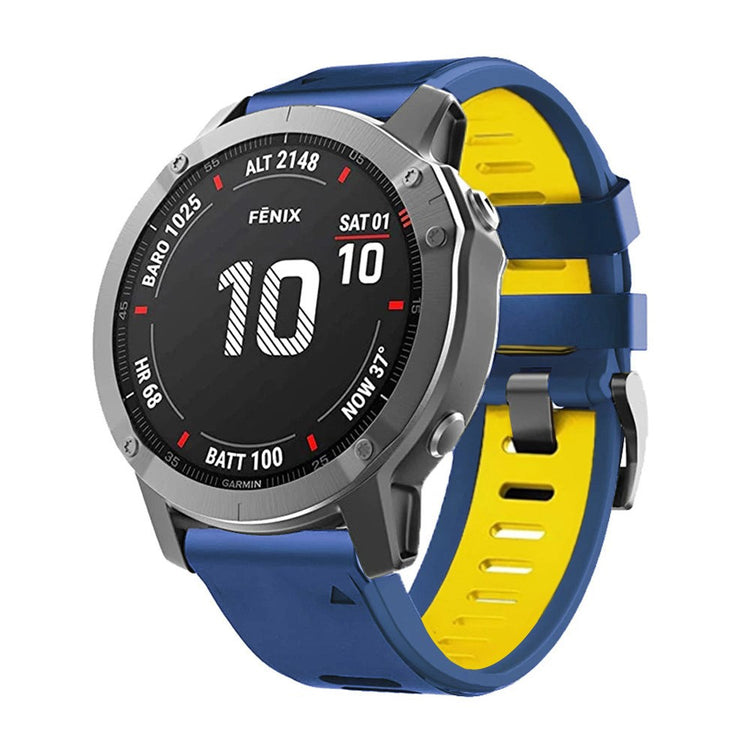 Ersetzen Sie Ihr altes oder defektes Armband mit dem hochwertigen Silicon-Uhrband für Garmin Tactix Delta, Enduro und Fenix 7X. Dieses Armband ist aus erstklassigem Silicone gefertigt, das nicht nur bequem zu tragen ist, sondern auch perfekt zu Ihrem täglichen Outfit passt. Das Material ist hautfreundlich und verursacht keine Allergien, sodass Sie sich keine Sorgen um Hautirritationen machen müssen. Der Verschluss besteht aus hochwertigen Materialien, die für ihre Langlebigkeit bekannt sind. Darüber hinaus bietet das Armband dank des mehrfachen Lochdesigns eine praktische Verstellbarkeit, die eine individuelle Anpassung an Ihr Handgelenk ermöglicht. Egal, ob für die Arbeit, Freizeit oder andere alltägliche Anlässe, dieses Armband ist die ideale Wahl für Männer und Frauen, die Wert auf Stil und Funktion legen. Wählen Sie das passende Armband für Ihre Bedürfnisse und genießen Sie den Komfort und die Qualität, die dieses Produkt bietet.