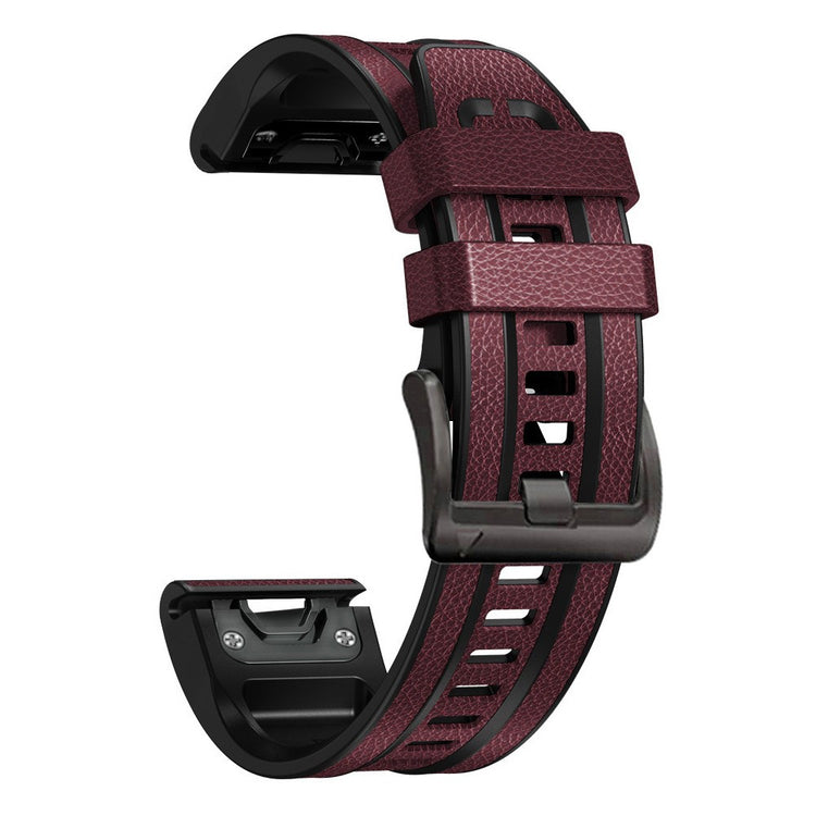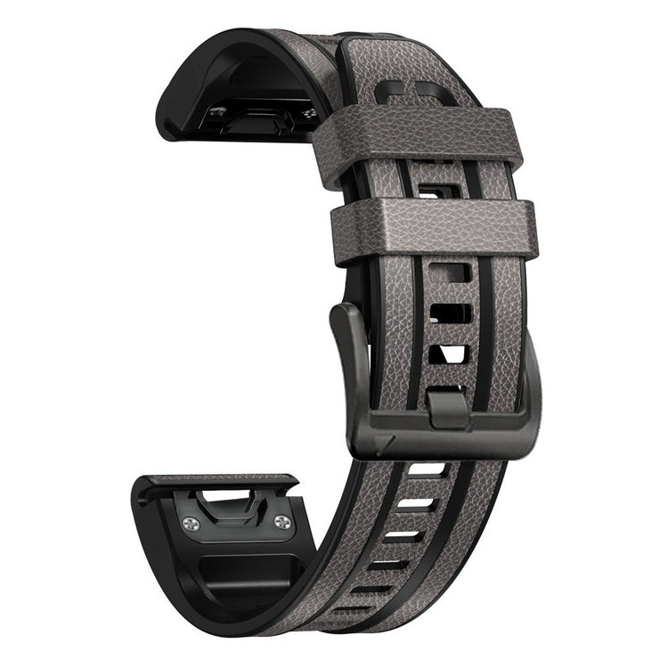 Suchen Sie nach einem hochwertigen Armband für Ihre Garmin Smartwatch? Das Quick Release Lederbeschichtete Silikon Armband ist die perfekte Wahl für Sie! Hergestellt aus wechselbeständigem Material, garantiert es Langlebigkeit und Widerstandsfähigkeit, sodass Sie es im täglichen Gebrauch unbesorgt tragen können. Die ergonomische Gestaltung sorgt dafür, dass das Armband besonders sanft und bequem am Handgelenk sitzt, was den Tragekomfort erhöht – ideal für lange Aktivitäten oder beim Sport. Dank der klassischen Dornschließe lässt sich das Armband ganz einfach und schnell anlegen und abnehmen. Das mehrlochige Design ermöglicht Ihnen eine optimale Anpassung an Ihre Handgelenkgröße, sodass das Anpassen an unterschiedliche Umfänge schnell und unkompliziert ist. Dieses Armband ist der ideale Ersatz für Ihr altes oder defektes Armband und bietet nicht nur Funktionalität, sondern auch einen eleganten Stil, der Ihre Smartwatch perfekt ergänzt. Gönnen Sie sich dieses Armband und erleben Sie eine Kombination aus Qualität und Komfort! Es passt zu zahlreichen Modellen und wird schnell zu Ihrem neuen Lieblingsaccessoire!