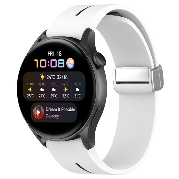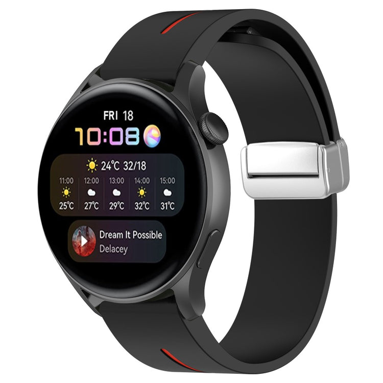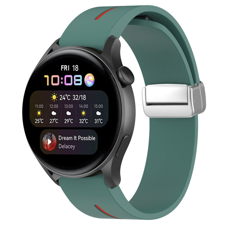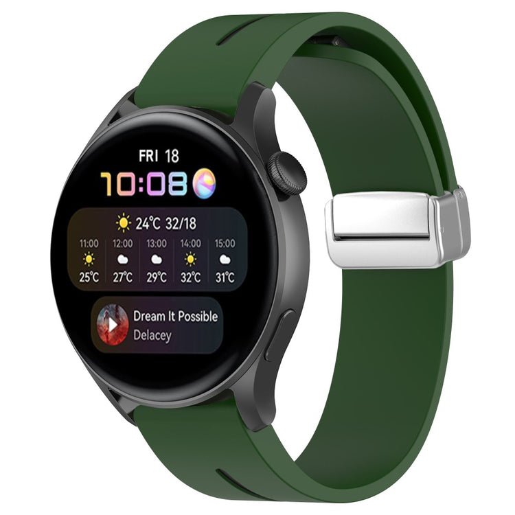 Entscheiden Sie sich für unser Uhrenarmband für die Huawei Watch GT 4 (46mm) und die Samsung Galaxy Watch3 (45mm), um Ihrem Wearable einen frischen Look zu verleihen! Dieses hochwertige Silikonmaterial sorgt nicht nur für eine bequeme Passform, sondern auch dafür, dass das Armband einfach mit Ihren täglichen Outfits kombinierbar ist. Es ist hautverträglich und verursacht keine Allergien, sodass Sie es bedenkenlos tragen können. Mit seiner Langlebigkeit und Robustheit ist dieses Armband die perfekte Wahl für den täglichen Gebrauch. Dank des cleveren faltbaren magnetischen Schnallendesigns lassen sich die Größen mühelos anpassen, was den Tragekomfort weiter erhöht. Wenn Sie Ihr altes, beschädigtes Armband ersetzen möchten, ist dieses Produkt die ideale Lösung. Warten Sie nicht länger und gönnen Sie sich das perfekte Accessoire für Ihre Smartwatch!