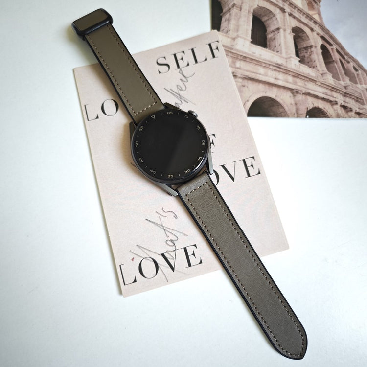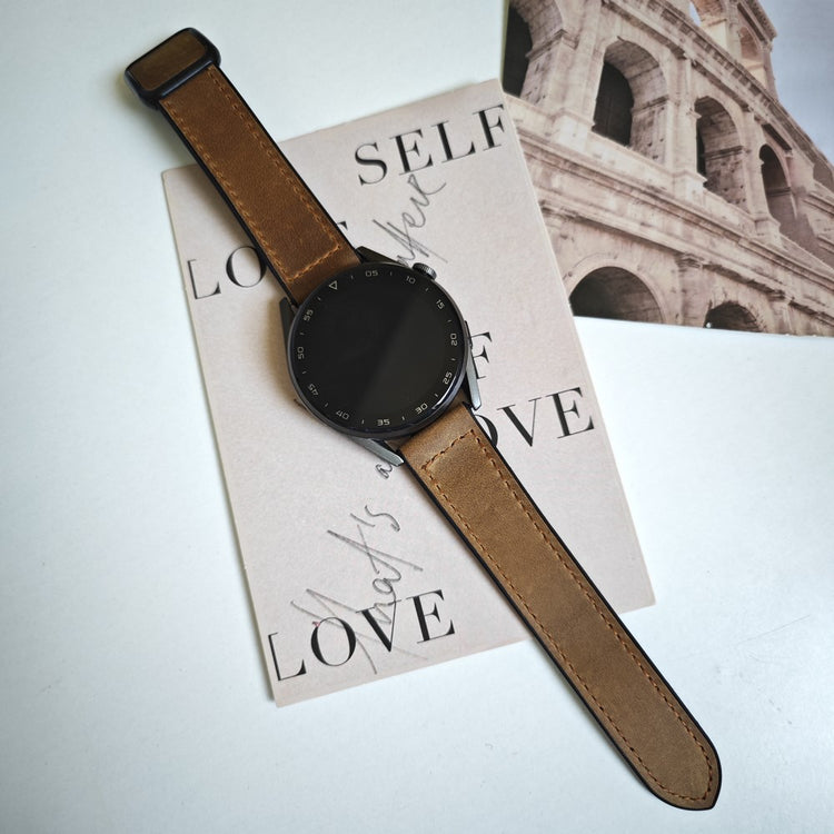 Samsung Galaxy Watch6 / Garmin Venu Sq 2 Watch Band 20mm PU Leather and Flexible Strap - Dark Brown