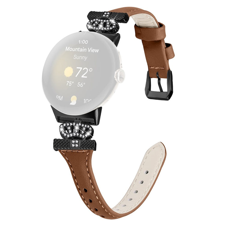 Entscheiden Sie sich für das Armband mit Krone-Rhinestone-Connector und gönnen Sie Ihrem Google Pixel Watch oder Watch 2 ein stilvolles Upgrade! Gefertigt aus hochwertigem, echtem Rindsleder, bietet dieses Armband nicht nur einen außergewöhnlichen Tragekomfort, sondern lässt sich auch problemlos mit Ihrer täglichen Outfit kombinieren. Das elegante, kronenförmige Design und die schimmernden Rhinestones verleihen Ihrer Smartwatch eine besonders schöne und modische Note. Dank des praktischen Mehrlochgestes lässt sich die Größe des Armbands ganz einfach anpassen, sodass Sie stets die perfekte Passform genießen können. Die robuste Stahl-Schnalle sorgt dafür, dass das Armband langlebig ist und auch bei täglichem Gebrauch hält. Ob im Berufsleben, in der Freizeit oder bei anderen täglichen Anlässen, dieses Armband ist die ideale Alternative zu Ihrem alten, defekten Armband und eignet sich sowohl für Frauen als auch für Männer.