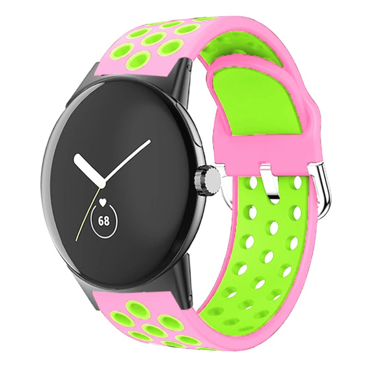 Google Pixel Watch 2 / Pixel Watch Silicone Dual Color Breathable Watch Bands - Pink+Green