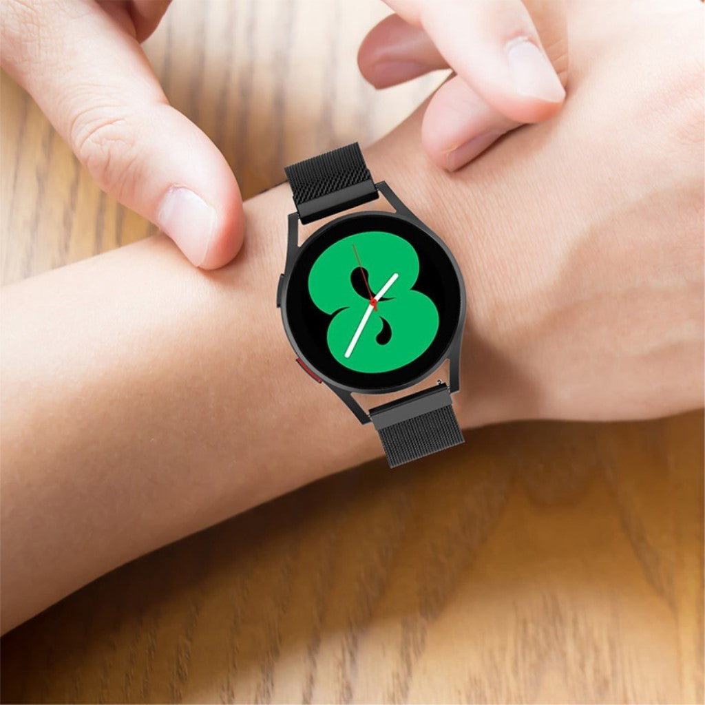 Erleben Sie die perfekte Kombination aus Eleganz und Funktionalität mit unserem Milanese Edelstahl Smartwatch Ersatzarmband. Hergestellt aus hochwertigem, langlebigem Edelstahl, bietet dieses Armband nicht nur eine exquisite Optik, sondern auch eine bemerkenswerte Strapazierfähigkeit. Der magnetische Verschluss ermöglicht eine mühelose und präzise Anpassung der Länge, sodass das Armband immer perfekt sitzt. Dank des atmungsaktiven feinen Mesh-Designs bleibt Ihr Handgelenk auch an warmen Tagen angenehm kühl, wodurch das Schwitzen effektiv vermieden wird. Dieses Armband ist die ideale Wahl, um Ihr altes oder defektes Armband zu ersetzen und Ihrer Smartwatch ein neues, statliches Aussehen zu verleihen. Mit einer Länge von 223 mm und einer Breite von 20 mm passt es auf Handgelenke mit einem Umfang von 5,5 bis 8,7 Zoll. Die Kompatibilität mit verschiedenen Modellen, einschließlich der Samsung Galaxy Watch Serie und zahlreichen Garmin sowie Huami Smartwatches, macht es zu einem äußerst vielseitigen Zubehör. Rüsten Sie Ihre Smartwatch jetzt auf und genießen Sie die Vorteile eines hochwertigen Armbands!