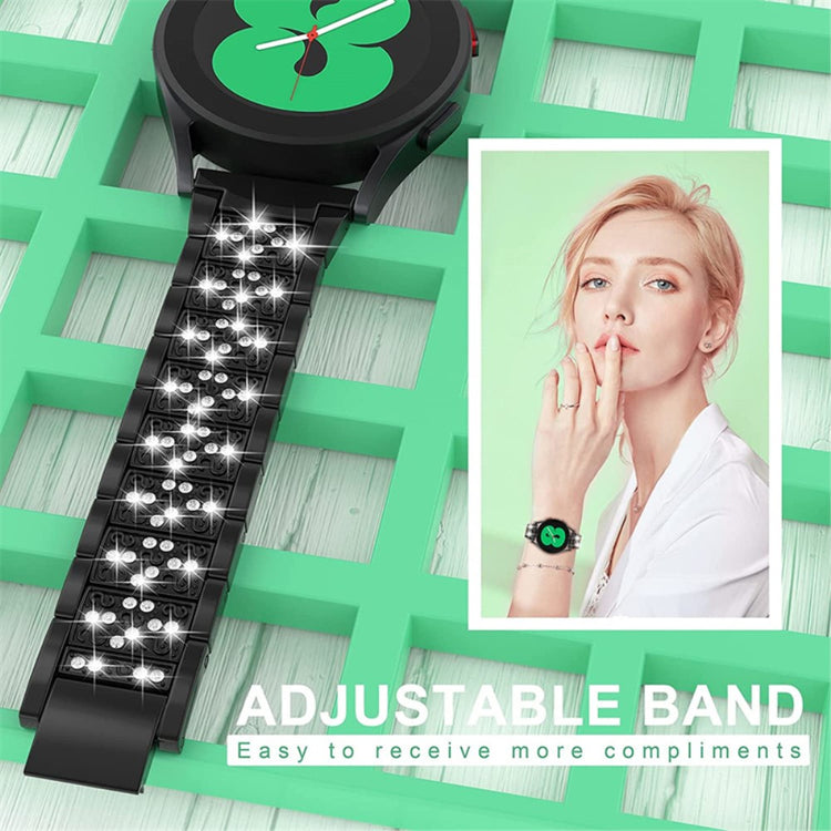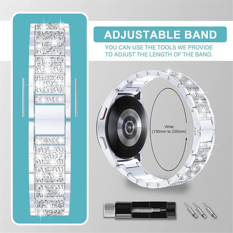 Entscheiden Sie sich für dieses elegante Rhinestone-Dekor-Armband, das nicht nur Ihre Garmin Vivomove, Samsung Galaxy Watch3 oder Huawei Watch GT 2 aufwertet, sondern auch Ihrem persönlichen Stil Ausdruck verleiht. Hergestellt aus hochwertigem Legierungsmaterial mit feiner Verarbeitung, ist dieses Armband ein echter Blickfang. Die glänzenden Rhinestones unterstreichen Ihr elegantes Auftreten und machen Sie zum Mittelpunkt jeder Veranstaltung. Dank der erstklassigen Verarbeitung ist das Armband rost- und abriebfest, schweißresistent und bietet eine angenehm glatte Oberfläche, die auch bei längerem Tragen komfortabel bleibt. Zudem wird das Armband mit einem Werkzeugset geliefert, das den Einbau und die Entfernung zum Kinderspiel macht. Kompatibel mit verschiedenen Modellen und für Handgelenke mit einem Umfang von 130-235mm geeignet, bietet es eine hervorragende Passform. Gönnen Sie sich das perfekte Zubehör, um Ihrer Uhr einen Hauch von Eleganz zu verleihen und dabei stets modisch aufzutreten.
