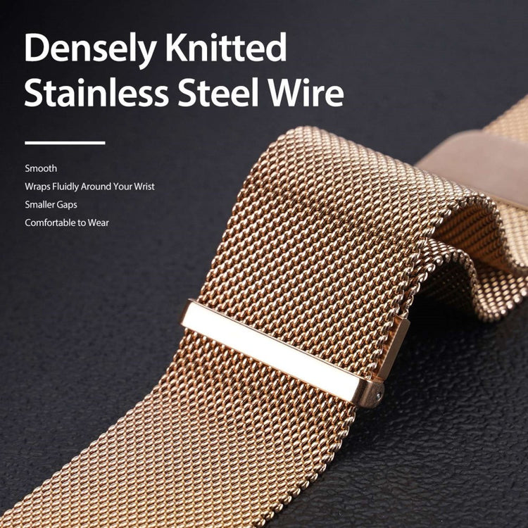 Dieses elegante Milanese Uhrenarmband aus robustem und langlebigem Edelstahlgemisch verleiht Ihrer Smartwatch einen klassischen und modischen Look. Die einzigartige Magnetverschluss-Technologie ermöglicht ein einfaches und sicheres Anlegen und Abnehmen des Armbandes. Es ist der ideale Ersatz für Ihr altes oder beschädigtes Armband.