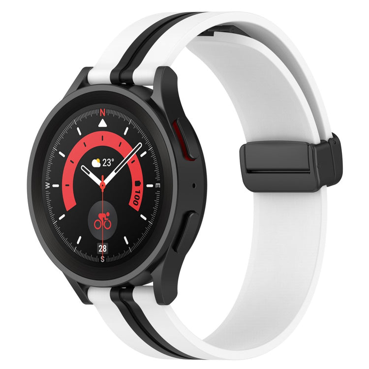 Entscheiden Sie sich für das Dual-Color Sportarmband mit magnetischer Klappverschluss und wechselbarem Silikonmaterial, um Ihrer Samsung Galaxy Watch6 oder anderen kompatiblen Modellen eine neue Dimension zu verleihen. Dieses Armband bietet einzigartigen Komfort dank des weichen Silikonmaterials, das angenehm zu tragen und hautfreundlich ist. Die innovative magnetische Klappverschluss Lösung ermöglicht ein einfaches Anlegen und Abnehmen, sodass Sie Ihre Uhr jederzeit schnell zur Hand haben. Zudem überzeugt das moderne Design, das Ihnen ermöglicht, das Armband vielseitig zu kombinieren und Ihrem persönlichen Stil anzupassen. Wenn Ihr altes Armband beschädigt oder abgenutzt ist, bietet dieses Armband eine ideale Ersatzlösung, die schnell installiert und entfernt werden kann. Mit einem Gewicht von nur 30g ist es leicht und ideal für den täglichen Gebrauch, während der verstellbare Umfang von 5.6 bis 8.5 Zoll eine perfekte Passform gewährleistet. Steigern Sie den Tragekomfort und die Ästhetik Ihrer Smartwatch mit diesem hervorragenden Armband!