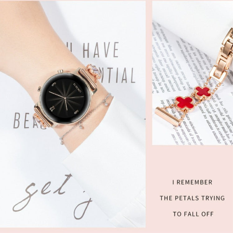 Entscheiden Sie sich für das Uhrenarmband aus hochwertigem Aluminiumlegierung für Ihre Huami Amazfit Bip 3 Pro / GTS3 / GTS 4 Mini! Dieses strapazierfähige und verschleißfeste Material garantiert eine lange Lebensdauer, während die sorgfältige Oberflächenbehandlung Ihnen ein unvergleichliches Tragegefühl bietet. Mit dem beliebten vierblättrigen Kleeblatt-Design symbolisiert dieses Armband Glück und Hoffnung – eine perfekte Ergänzung für Ihren stilvollen Alltag. Es ist die ideale Wahl, um ein altes, defektes Armband zu ersetzen und Ihrem Smartwatch-Look neuen Schwung zu verleihen. Darüber hinaus sind verschiedene Farben verfügbar, sodass Sie ganz nach Ihrem individuellen Stil wählen können. Mit einer Breite von 20mm und einer Größenanpassung für Handgelenke von 5.3 bis 8.5 Zoll passt es optimal und ist mit zahlreichen Smartwatch-Modellen kompatibel. Investieren Sie in Qualität und Stil – für eine Smartwatch, die so einzigartig ist wie Sie!