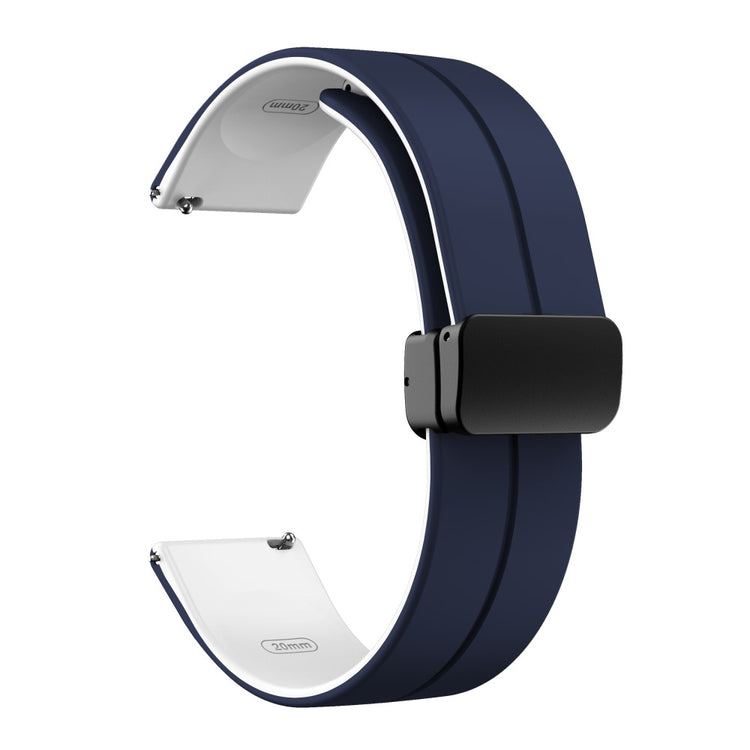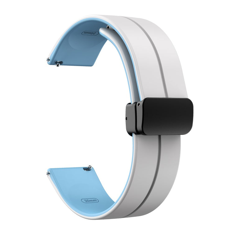 Dieses zweifarbige Sportarmband aus hochwertigem Silikon bietet einen angenehmen Tragekomfort und lässt sich leicht mit Ihrem täglichen Outfit kombinieren. Die magnetische Faltschliesse ermöglicht ein einfaches An- und Ablegen der Uhr.