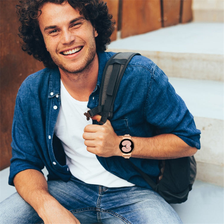 Dieses Metallarmband für die Samsung Galaxy Watch 5 / 4 Active (44mm / 40mm) / Watch 5 Pro (45mm) verleiht Ihrer Smartwatch einen Hauch von Glamour und zeitloser Eleganz. Das hochwertige Metallmaterial und der mit Strasssteinen verzierte Adapter sorgen für ein luxuriöses Aussehen und Langlebigkeit. Eine wahre Augenweide!