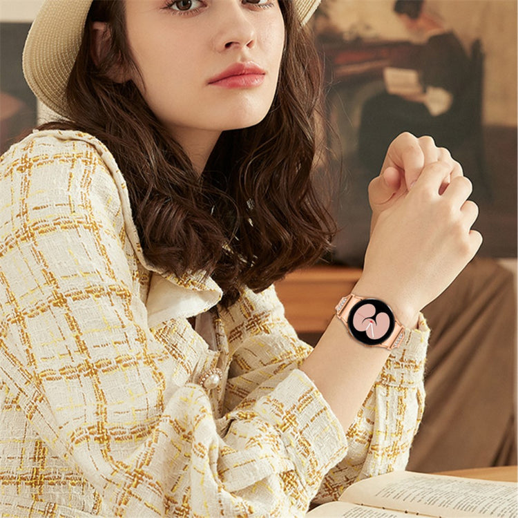 Verleihen Sie Ihrer Samsung Galaxy Watch 5 / 4 Active 44mm / 40mm / Watch 5 Pro 45mm mit unserem eleganten Metallarmband mit Rhinestone-Dekor einen Hauch von Glamour. Hergestellt aus hochwertigem Metallmaterial, überzeugt dieses Armband durch seine Langlebigkeit und seinen äußeren Reiz. Es ist nicht nur ein praktisches Accessoire, sondern auch ein wahres Augenweide, das einen Hauch von zeitloser Eleganz vermittelt. Ihr Handgelenk wird zum Blickfang – ideal für besondere Anlässe wie Hochzeiten, Geburtstagsfeiern, Valentinstag oder Muttertagsgeschenke. Dieses luxuriöse Armband ist ein hervorragendes Geschenk für Freundinnen oder die eigene Partnerin. Zudem ist es für Handgelenke von 5.5"-8.0" (140mm-203mm) geeignet und bietet somit einen komfortablen Sitz. Verwöhnen Sie sich selbst oder Ihre Liebsten mit diesem stilvollen Ersatzband!