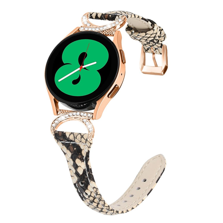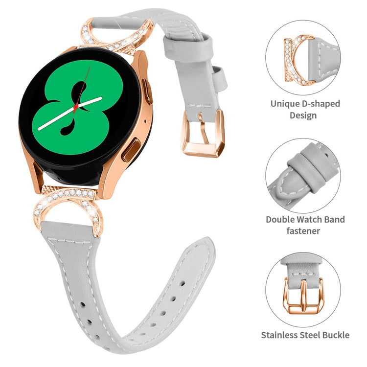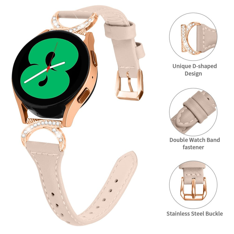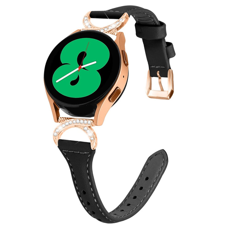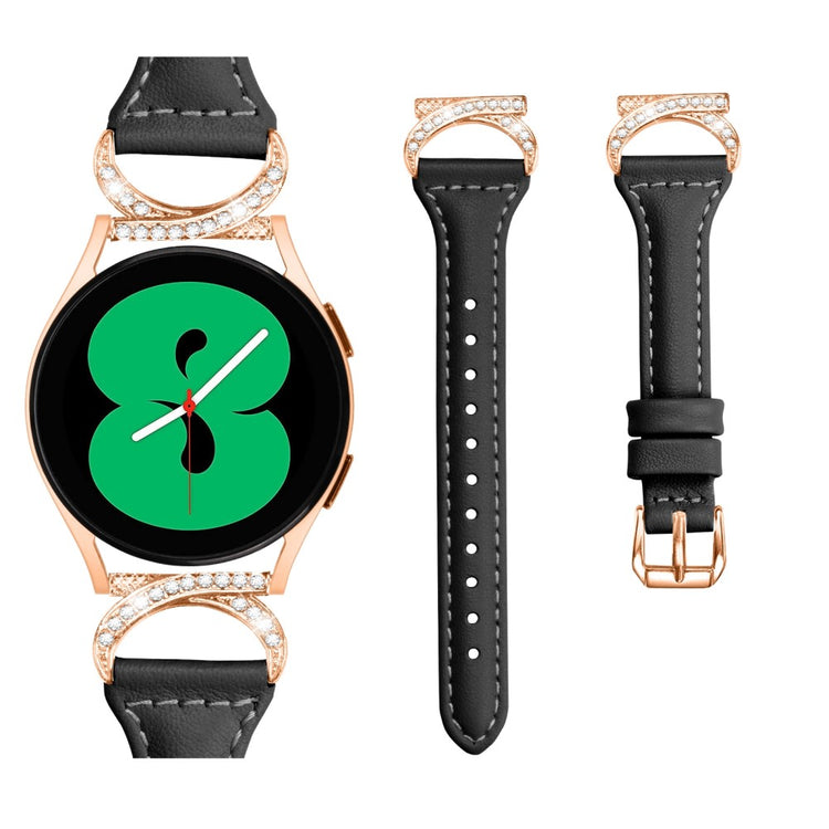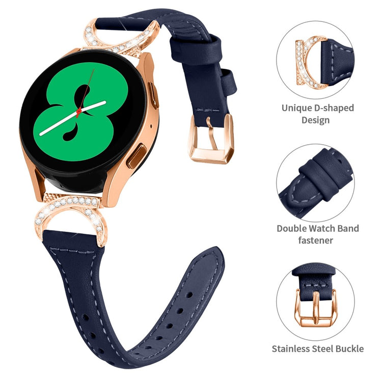 Erleben Sie die perfekte Kombination aus Stil und Funktionalität mit unserem hochwertigen Leder-Armband für Ihre Samsung Galaxy Watch. Gefertigt aus hochwertigem Leder, bietet dieses Armband nicht nur Komfort beim Tragen, sondern lässt sich auch mühelos mit Ihrem täglichen Outfit kombinieren. Das elegante Design und die funkelnden Rhinestones verleihen Ihrer Smartwatch einen Hauch von Eleganz und Stil. Dank des Mehrloch-Designs können Sie die Größe des Armbands ganz einfach anpassen, was es ideal für jeden Handgelenkumfang macht. Der hochwertige Edelstahlschnallenverschluss sorgt zudem für eine langlebige Nutzung und gibt Ihnen die Sicherheit, dass Ihr Armband auch bei aktivem Einsatz nicht verrutscht. Ein perfekter Ersatz für Ihr altes, beschädigtes Armband, das sich sowohl für Beruf, Freizeit als auch für andere tägliche Anlässe eignet. Dieses Armband ist die ideale Wahl für alle, die ihrer Smartwatch einen neuen Glanz verleihen möchten!
