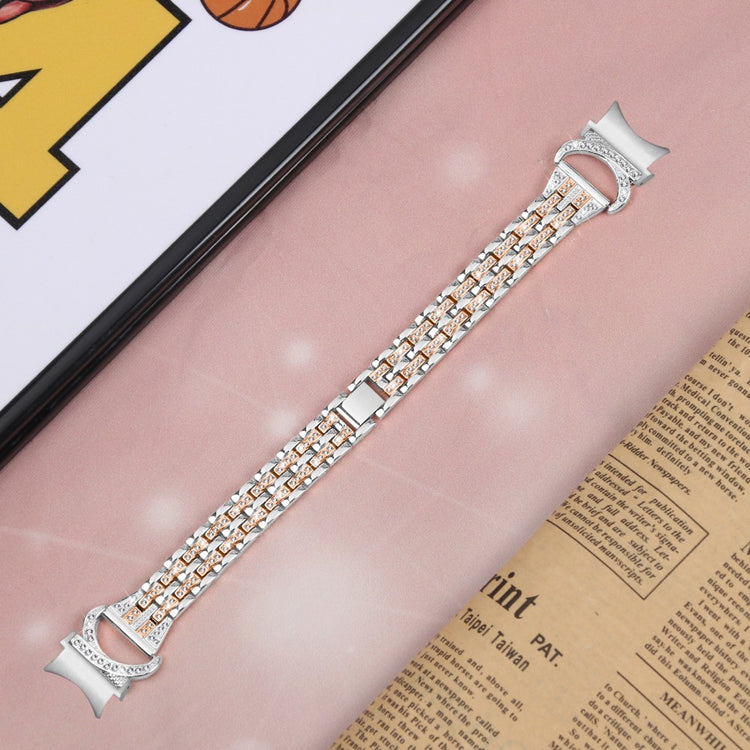 Verleihen Sie Ihrer Smartwatch mit dem Bling Band für Samsung Galaxy Watch6 (40mm und 44mm) / Watch6 Classic (43mm und 47mm) / Watch 5 (40mm und 44mm) / Watch4 (40mm und 44mm) eine neue, elegante Note! Dieses Armband aus hochwertigem Edelstahl ist nicht nur verschleißfest, sondern auch äußerst langlebig. Die 2-reihigen, schimmernden Rhinestones machen es zu einem einzigartigen und stilvollen Accessoire, das Ihre Smartwatch personalisiert. Perfekt geeignet als Ersatzarmband für Ihr altes, beschädigtes Modell, bietet dieses stilvolle Armband nicht nur eine hochwertige Optik, sondern auch eine praktische Handhabung, da Sie Zugang zu allen Bedienelementen, Tasten, Sensoren und Funktionen Ihrer Smartwatch haben. Setzen Sie Akzente und zeigen Sie Ihren persönlichen Stil mit diesem raffinierten Armband!